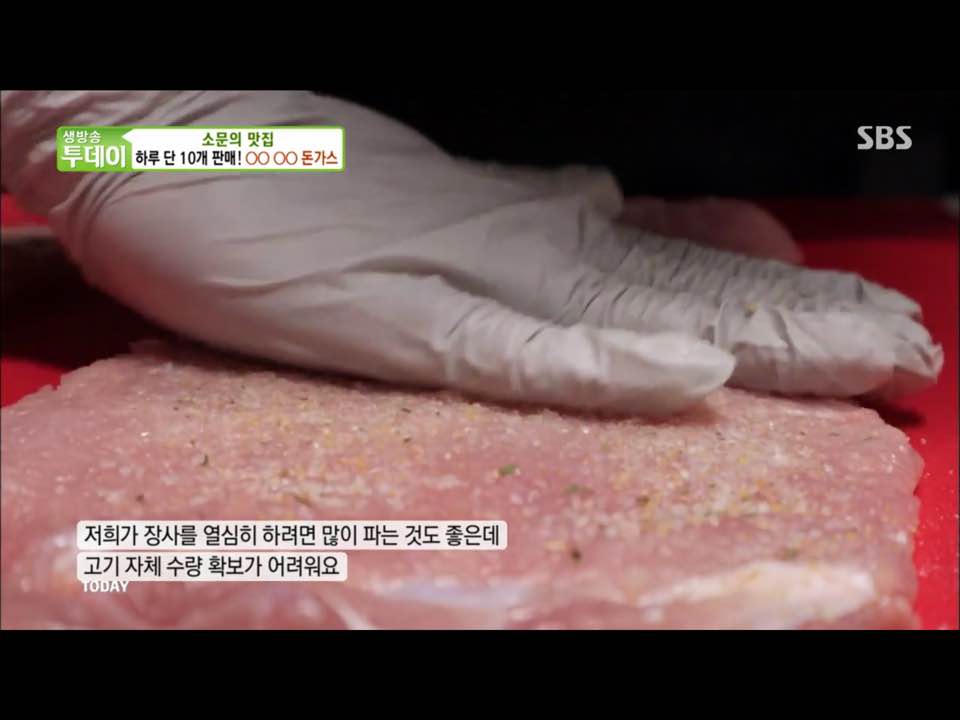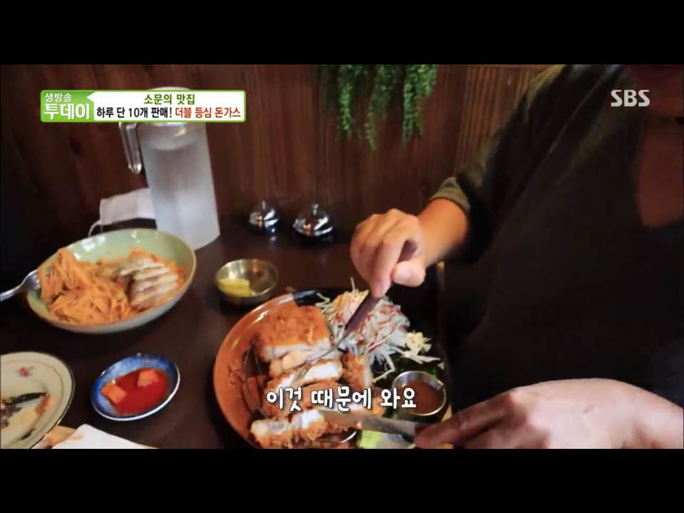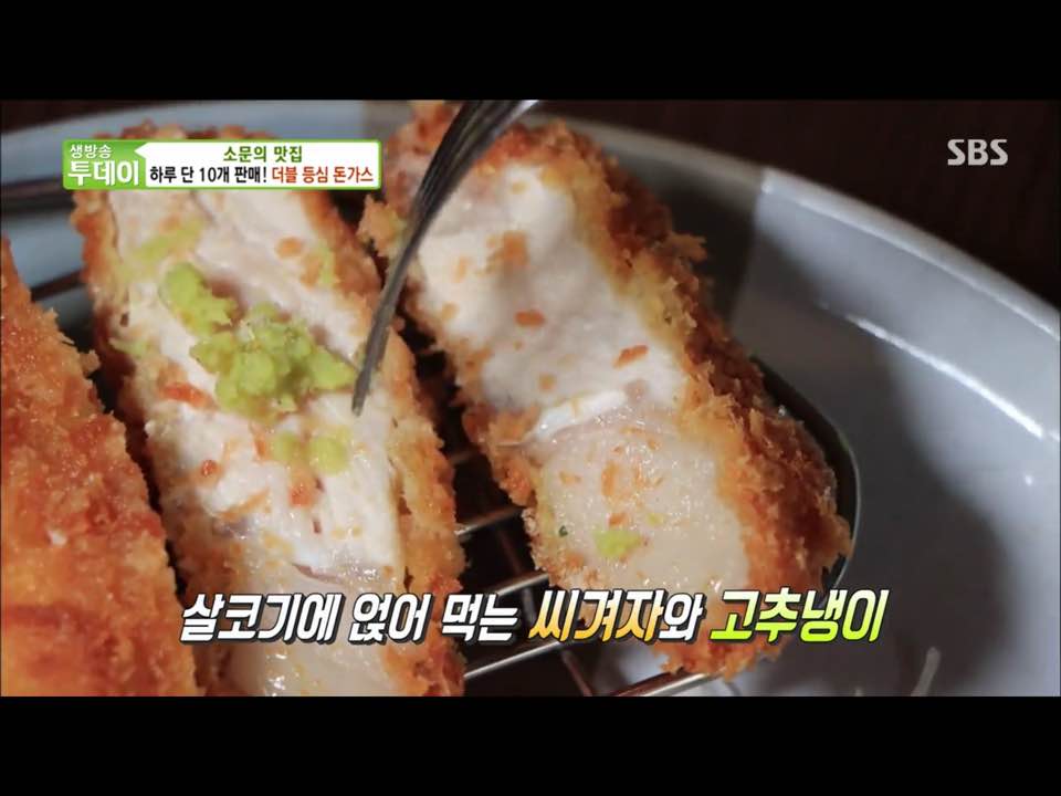 15일 방송된 sbs 생방송 투데이 소문의 맛집 에서 소개된 돈가스 메뉴 중에 매운맛에 중독되는 고추장 넓적 돈가스와 함께 하루 10장만 판매한다는