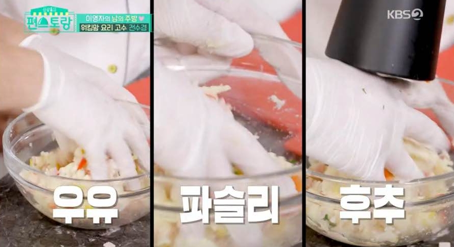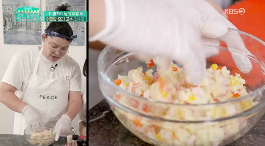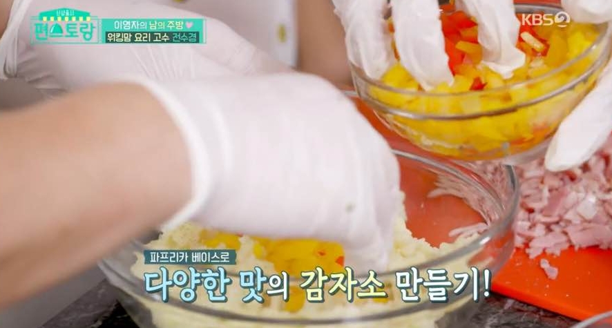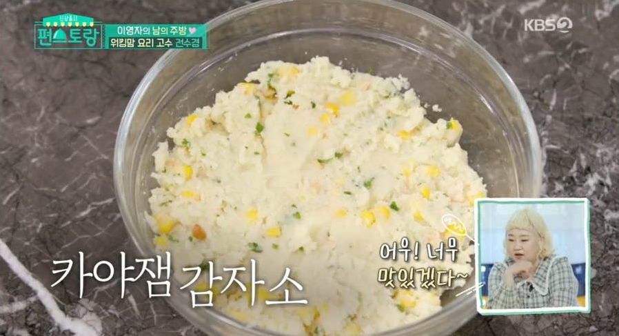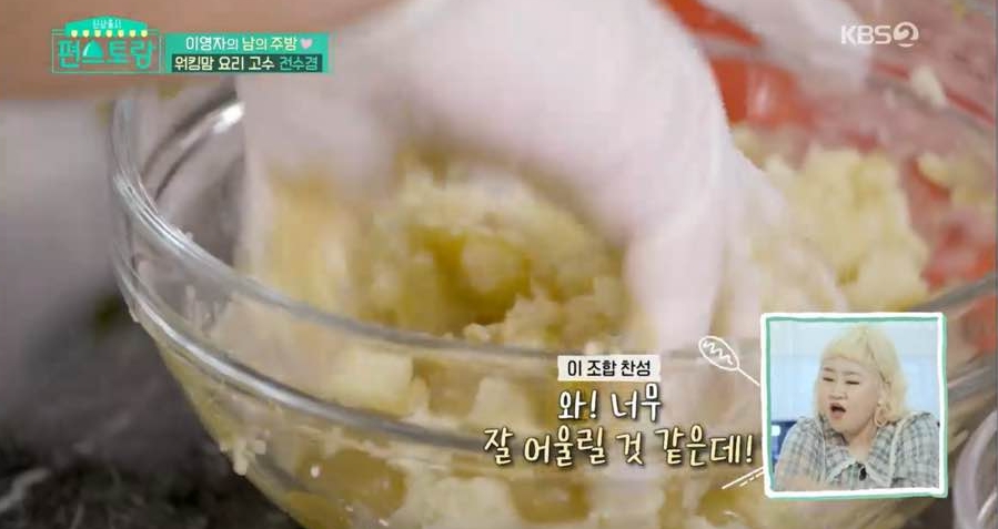 이영자의 편스토랑 출시메뉴는 신박하게 삶은 감자를 다져서 싱가포르 카야잼과 함께 버무리기로 시작. 벌써 반칙...