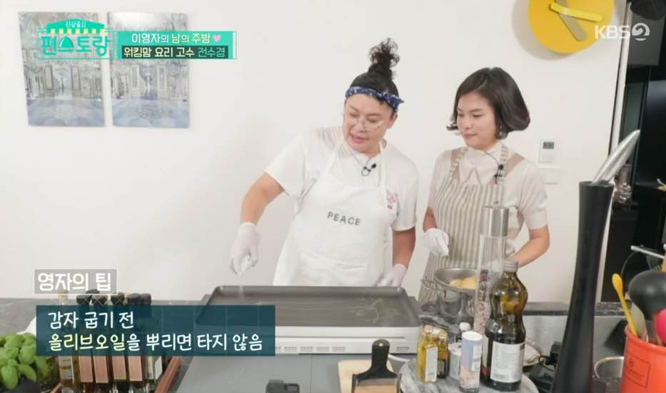 이영자가 이번에 권수경의 주방에 가서 아들에게 선물?하는 영자표 고속도로 터미널을 재현한 영자표 버터구이감자로 시작된 요리.