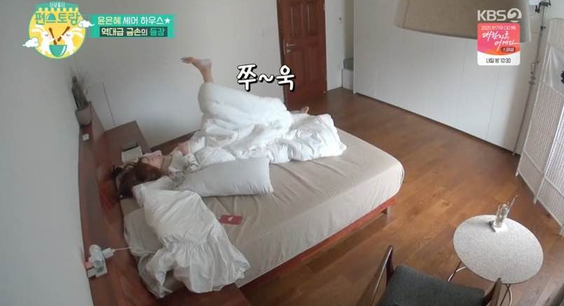 절친 둘(매니저,보컬?)과 함께 셋이서 사는 집을 공개. 친구들이 먼저 일어나 있고 늦게 일어난 윤은혜가 하고있는 목 마사지기 탐나는데...?ㅋㅋㅋ