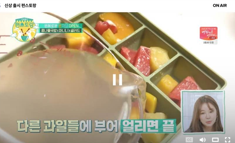 큐브만 넣어줘도 설탕없이 달달하고 예쁜 건강한 음료 완성. 이상 편스토랑 윤은혜 집 편스토랑 윤은혜 주방 스테비아 과일큐브 만들기 포스팅을 마칩니다.