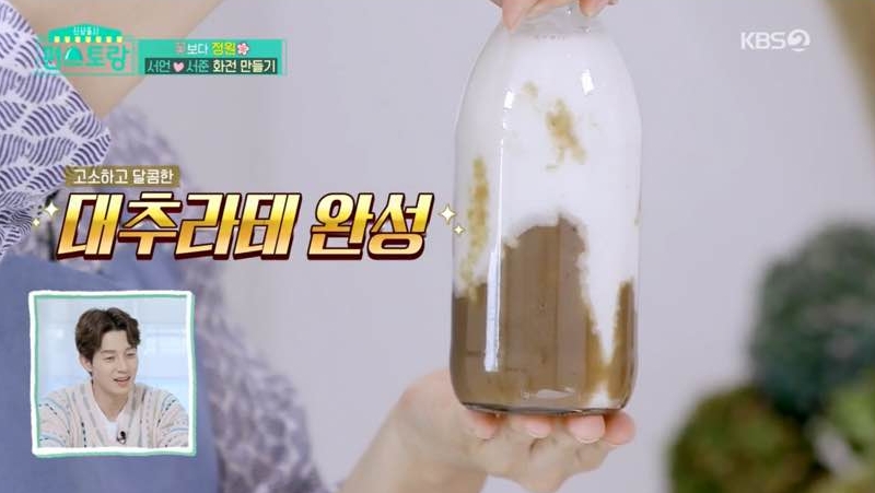 비주얼도 훌륭한 대추라떼 완성!!ㅋㅋㅋㅋ 대추라테? 완성!!! 이상 편스토랑 문정원 대추라떼 레시피 편스토랑 대추라테 만들기 끝!!