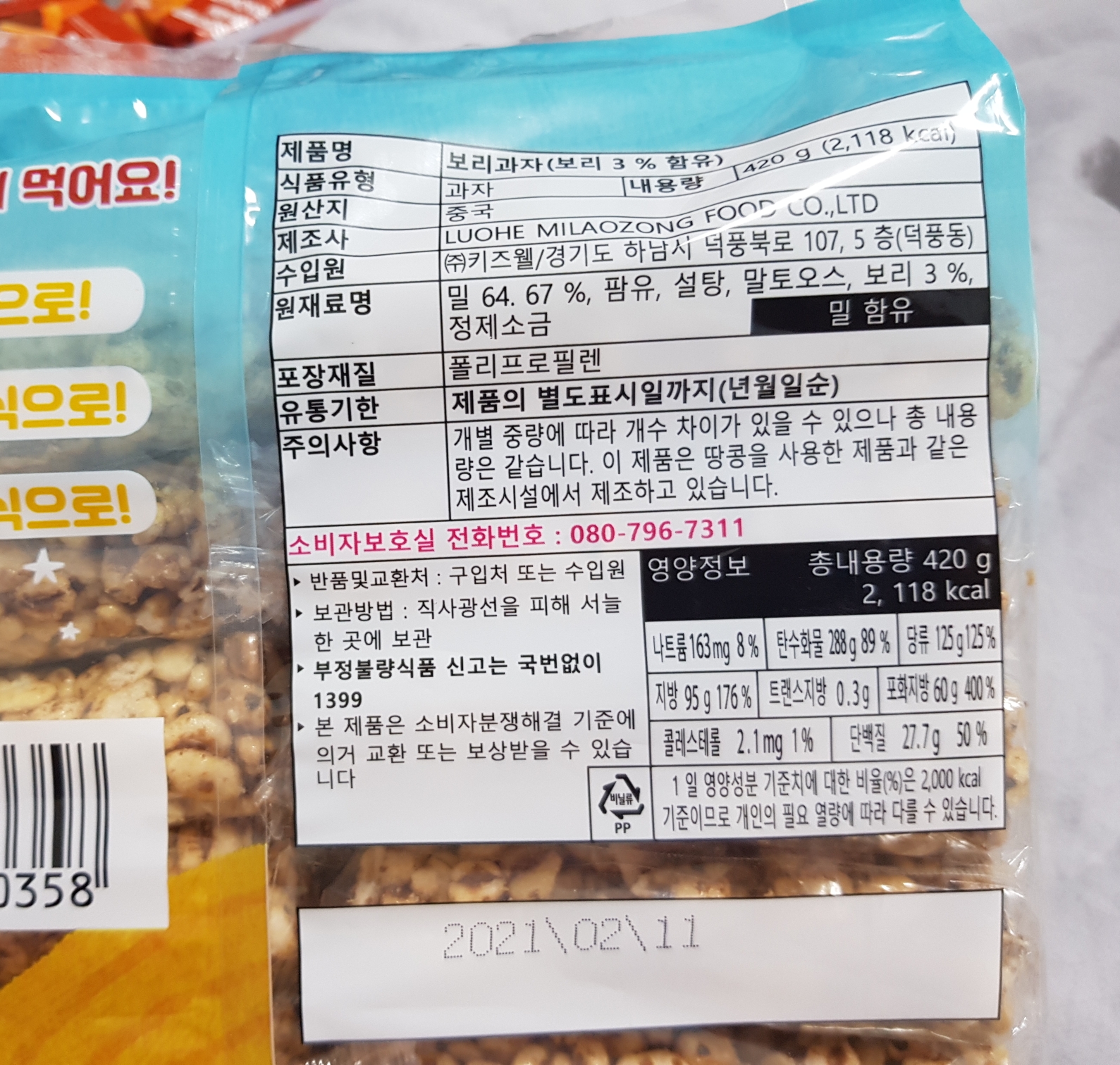 이날 구매한것 중에 젤 맘에드는과자는 의외로 보리과자 ㅋㅋㅋㅋㅋㅋ 아이러니 ㅋㅋㅋㅋ 쌀과자 살려고 하다가 낱개 포장에 뭔가 괜찮아 보이길래 엄마도 좋아할거 같아서 기대없이 그냥 사와봤는데 가격도 2천원이라 완전 착한가격인데