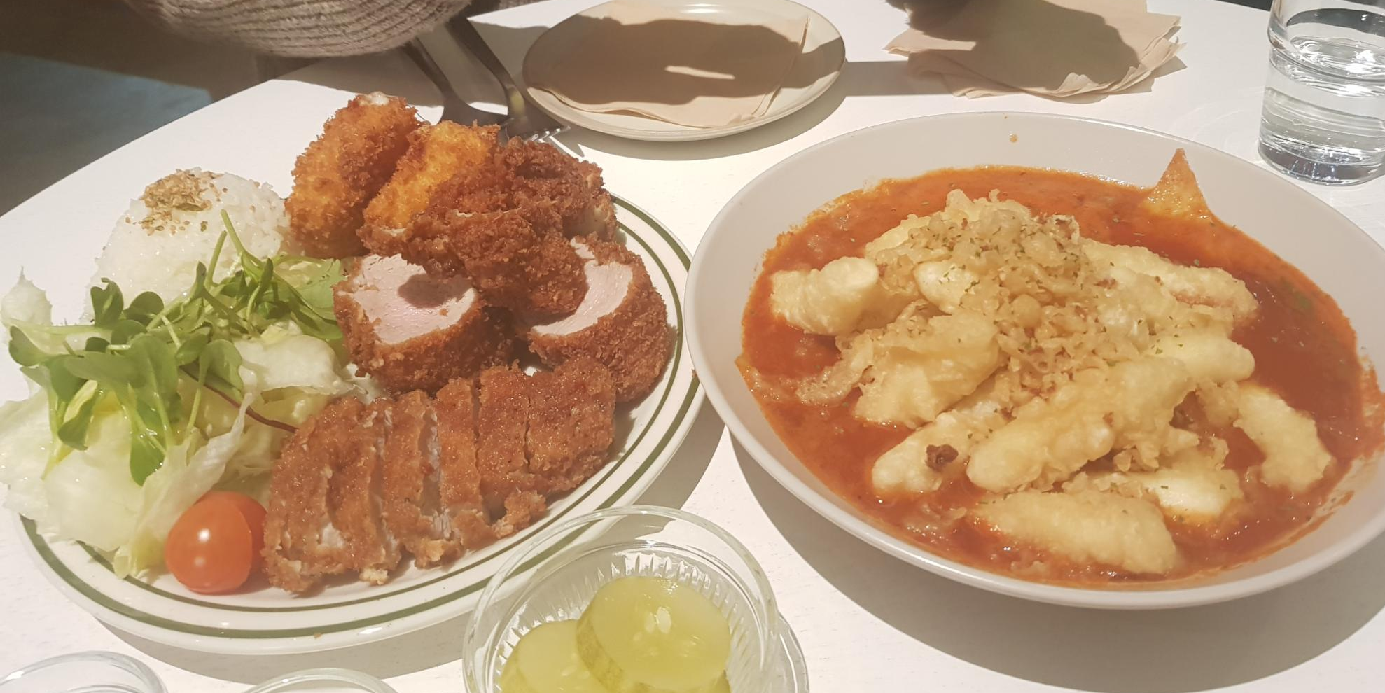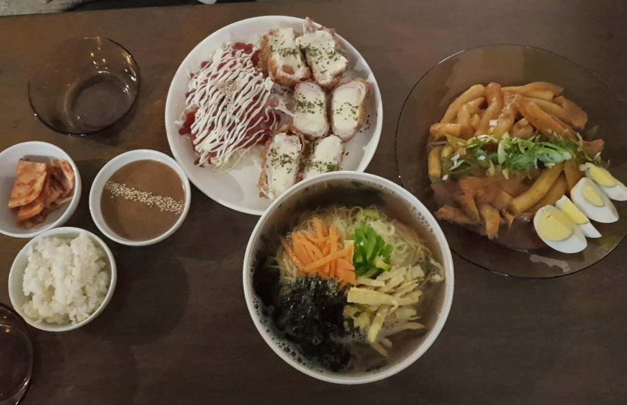 모듬돈까스 자세히서 찍어봄ㅋㅋ치즈도 항상 옳다.윤옥연할매떡볶이가 집근처임에도 불구하고 나는 중앙떡볶이를 좋아하고 이소떡도 달코미를 좋아하는 나는 순위..보다는 장점만 모아서!! 공주떡볶이의 튀김에다 핑퐁스낵의 튀김떡볶이안에 중국당면 넣어서 해피치즈스마일의 모듬돈까스랑 프롬마더의 치즈돈까스도 같이 먹고싶다.ㅋㅋㅋㅋ 퍼펙트 테이블임.