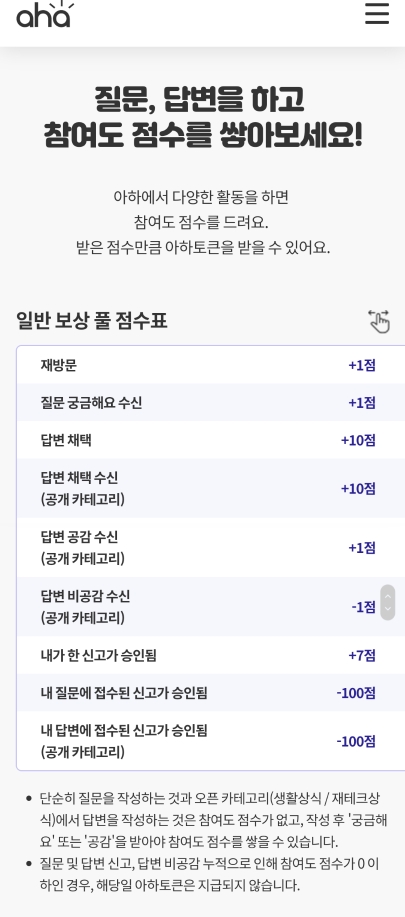 사실 점수를 받는 방식이 다양한데 일일이 집중해서 매달리기엔 우리의 시간은 너무나 부족하기 때문에 대충 일반 보상 점수표를 참고하면 될것같다. 내 질문에 누군가가 궁금해요를 눌렀거나 공유를 했거나 답변을 했거나 채택이 되었거나 할때 주어지는 점수!