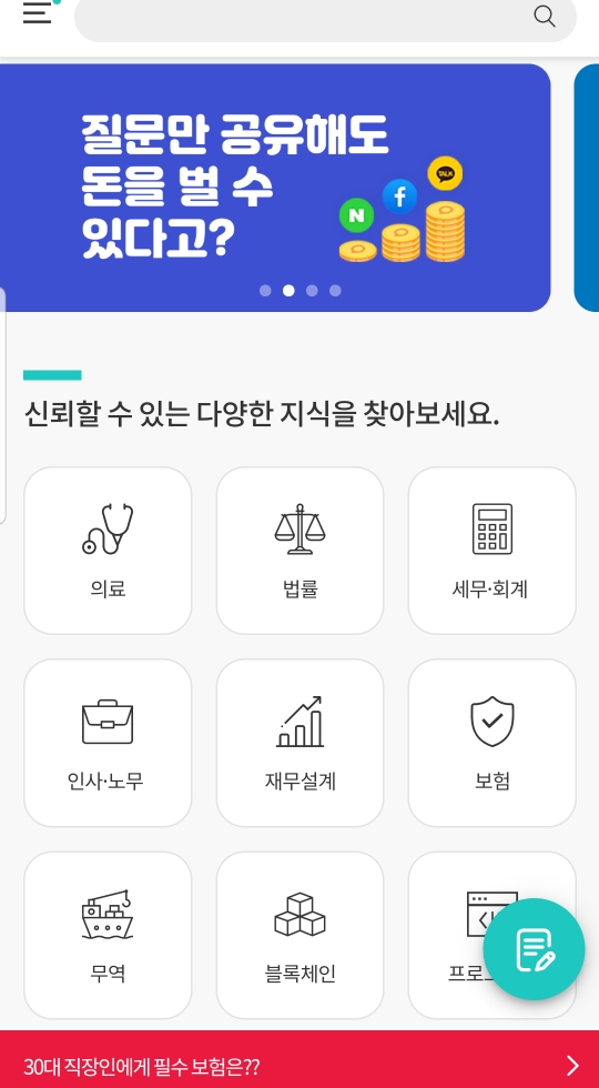 광고 없는 전문 지식 답변을 원하세요? 세상의 모든 전문 지식이 모여있는 곳. 변호사, 노무사, 세무사, 회계사 등 사전에 검증된 전문직 및 현업 실무자로 부터 받을 수 있는 신뢰할 수 있는 전��