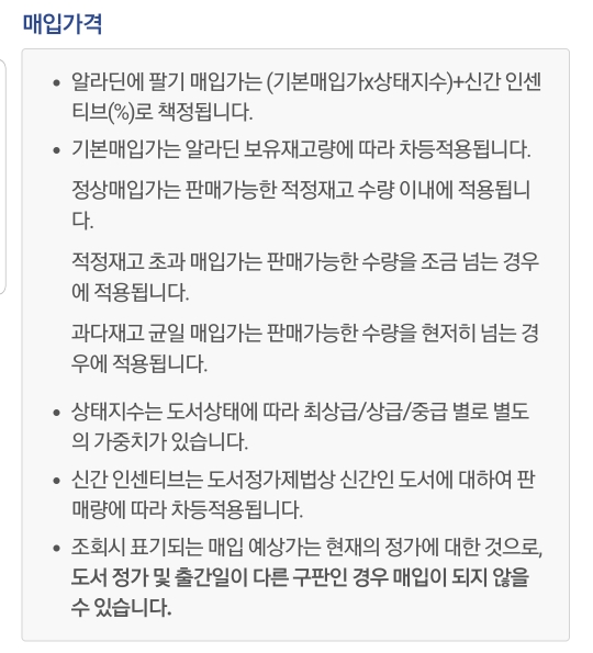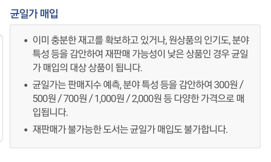 매입가격 책정에 대해서 균일가 매입에 대해서 나와있는 설명 참고.