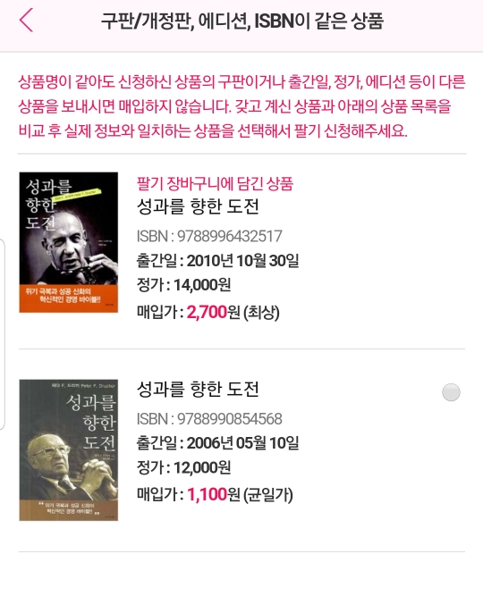 아. 그리고 선택된 책 아래에 구판/개정판/에디션 확인이라는걸 눌러서 현재 책이 옛날 버전인지 최근 버전인지도 체크해준다. 아무래도 최신버전이 가격이 더 높은건 당연. 얼마안되지만...ㅋㅋㅋ