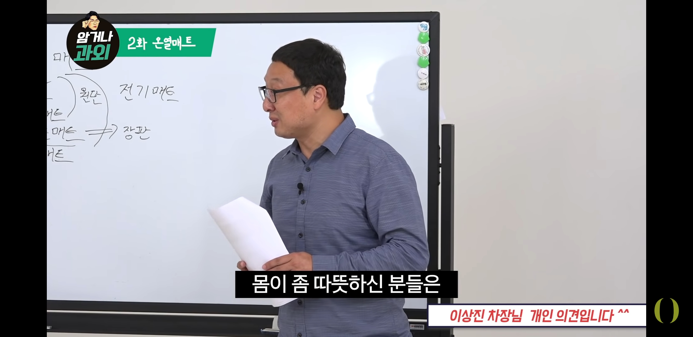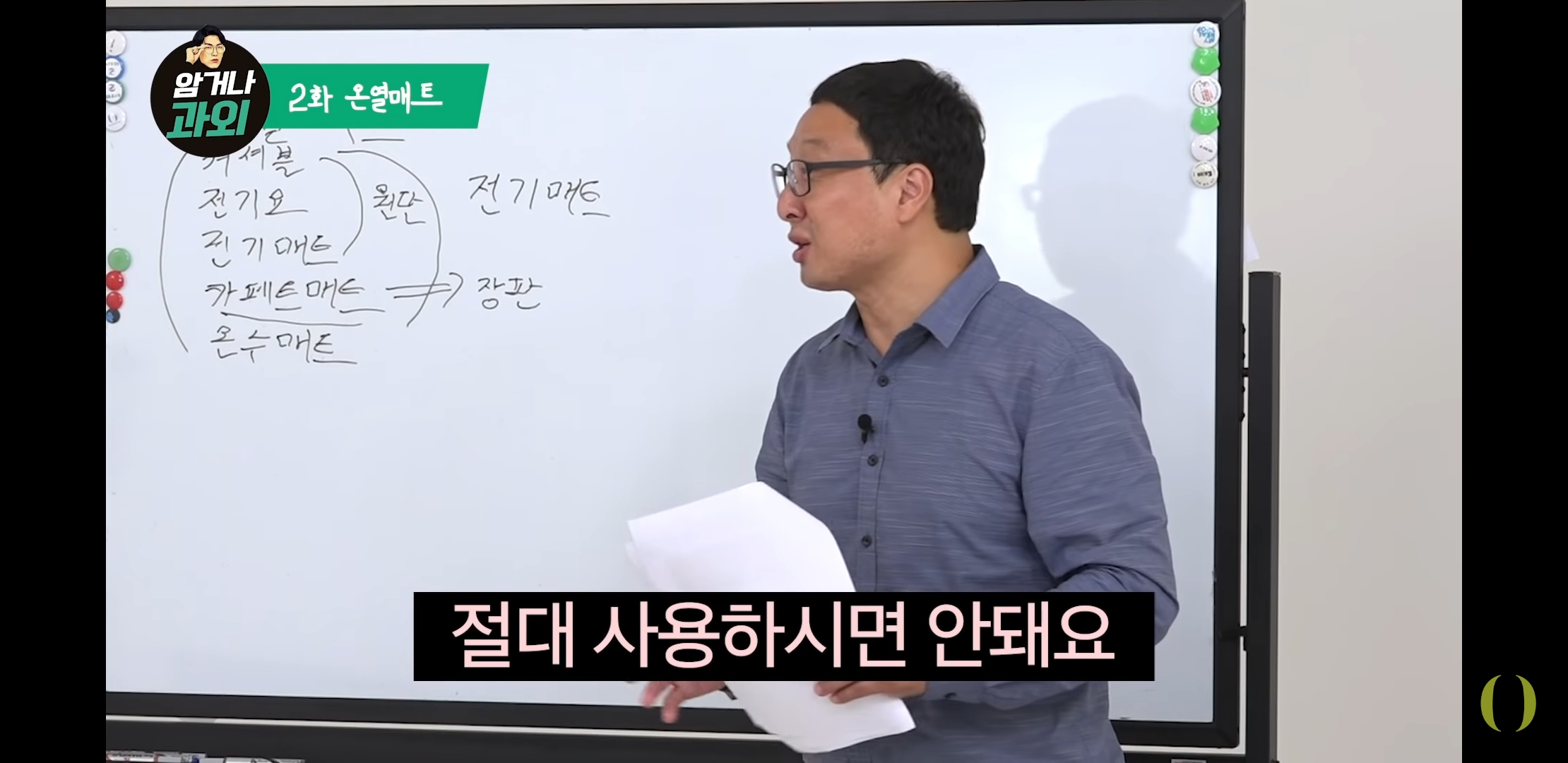 첫번째로 온수매트와 전기매트의 원리를 알려주심.