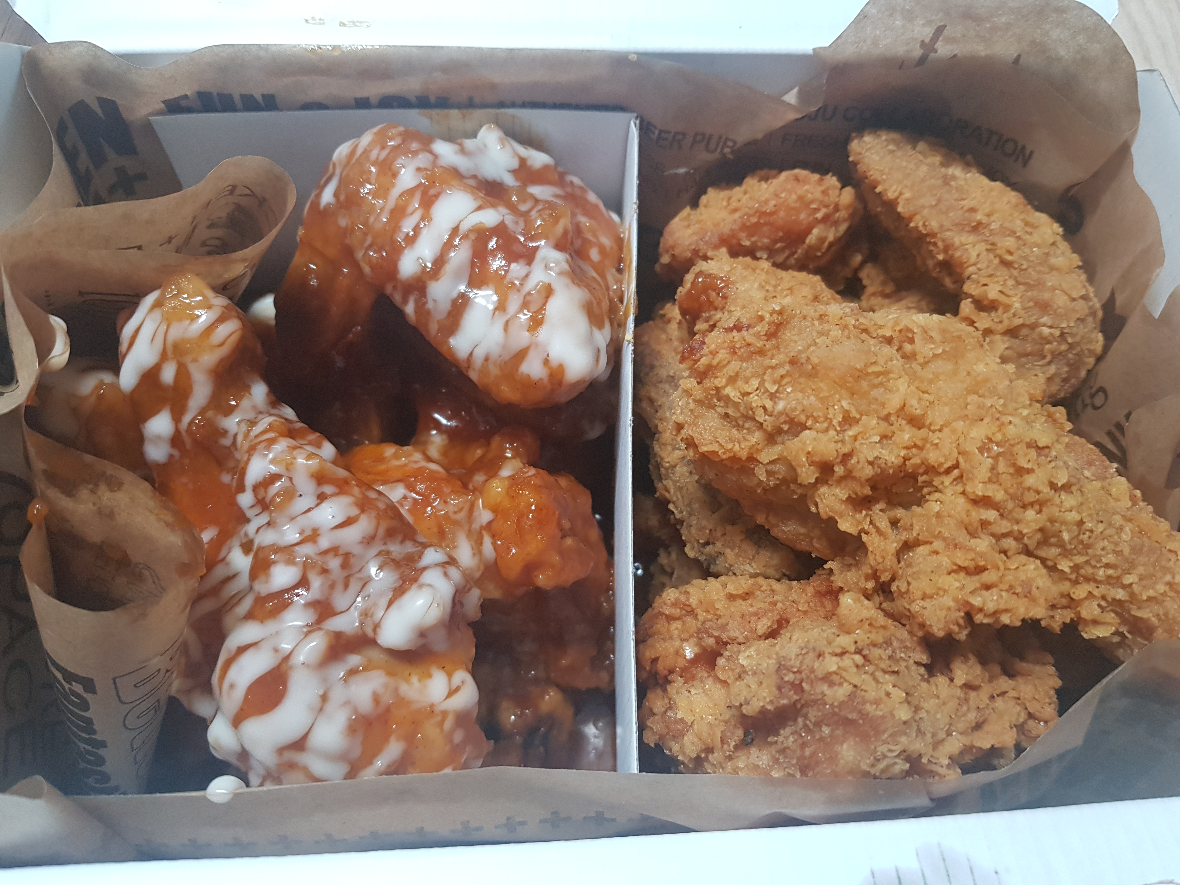 왼쪽이 스크림 오른쪽이 황금후라이드 ㅋㅋㅋㅋㅋㅋ 근데 비주얼은 꽤 맛있게 보이는건 인정. 뭔가 후라이드도 바삭할것 같고 기대기대.