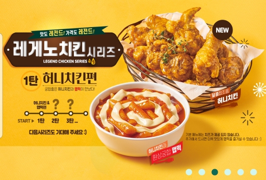 레게노 치킨 시리즈 1탄은 허니치킨 세트. 치킨과 떡볶이가 함께나와서 좋음.. ㅋㅋ 레게노 시리즈는 듣던대로 인기있는 치킨 메뉴의st 타입인듯. 교촌 허니콤보 친구 치킨매니아 허니치킨 ㅋㅋㅋㅋ 허니치킨에는 맵떡이 나옴.