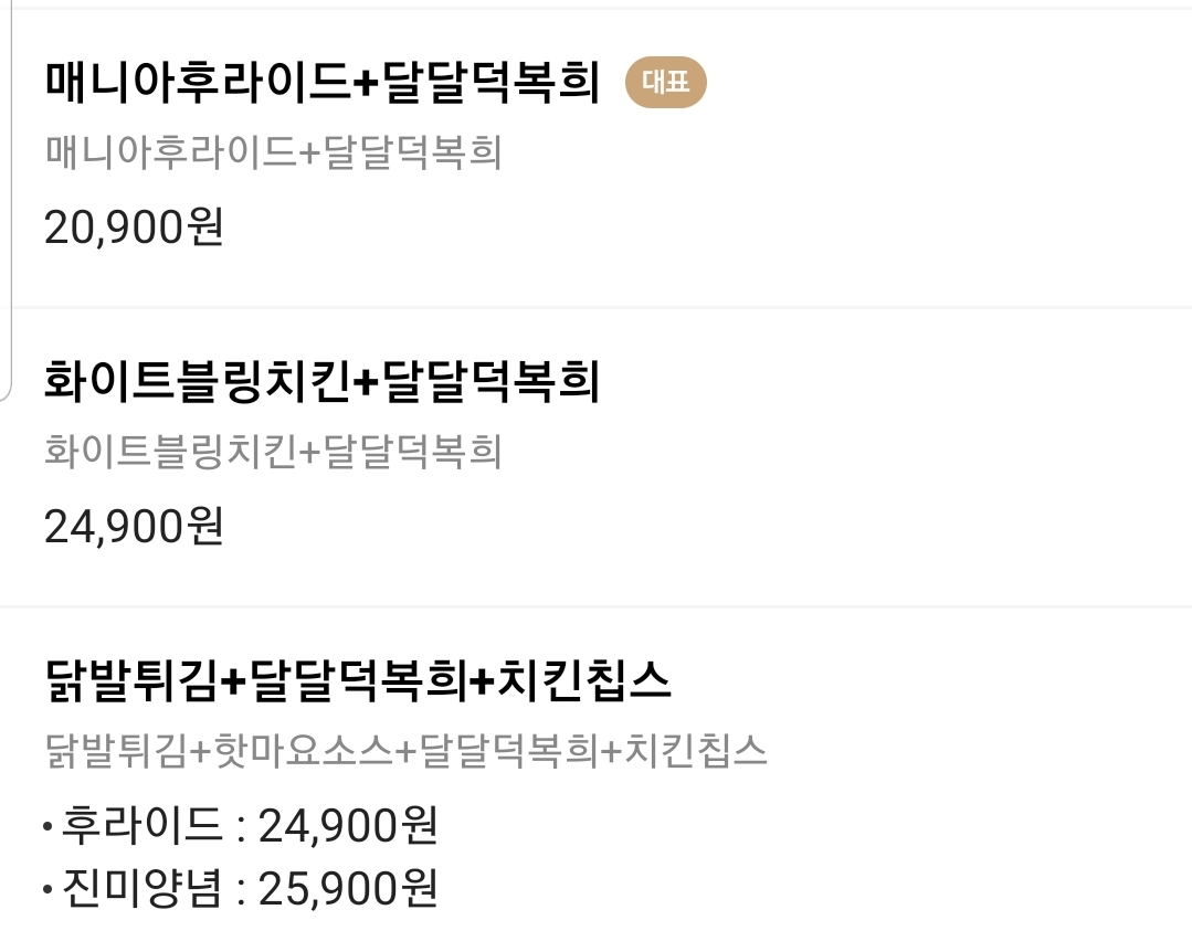닭발튀김과 떡볶이 세트 / 후라이드와 떡볶이 세트가 있는데 얘는 오뎅도 들어가나봄. 달달한 맛인가 봉가. 다음 메뉴는 너다..ㅋㅋㅋㅋ