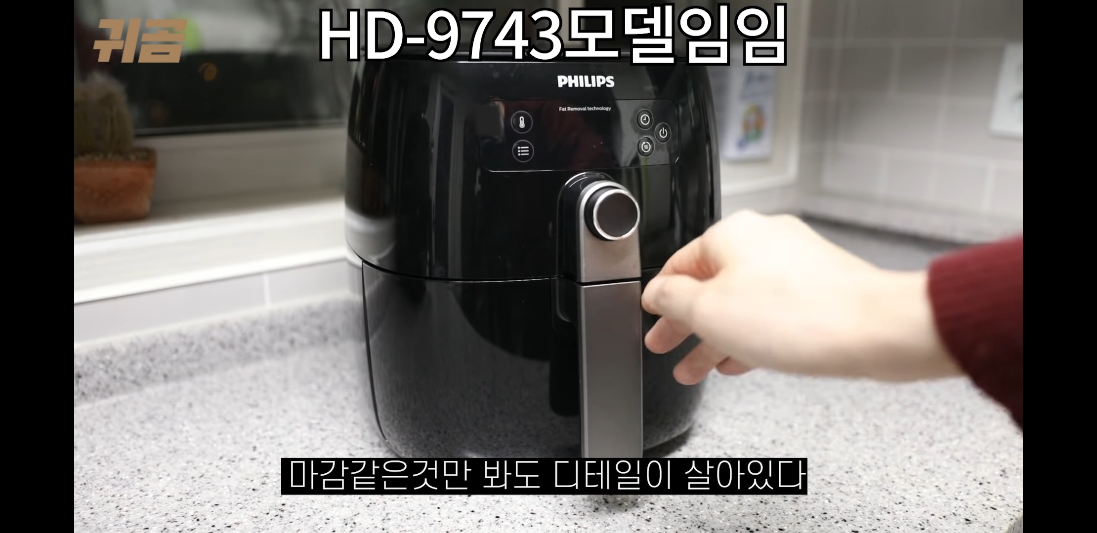 이런 디테일을 알수있는 부분이 서랍을 뺄때 보통 힘줘서 열어야 하는 반면 필립스 에어프라이어는 힘들이지 않고 가볍게 한손으로 누르면 힘들이지 않고도 서랍이 툭 하고 열리는 장점.