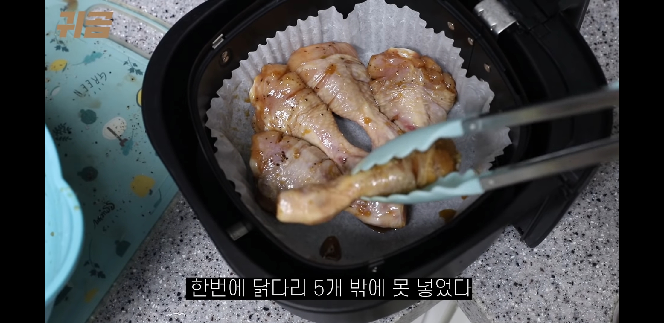필립스 에어프라이어로 2.2리터론 한번에 닭다리를 5개 밖에 못넣어서 결국 2번에 걸쳐서 만들어야 했던것...ㅋㅋㅋ 고기는 끊기면 안되는데 ..