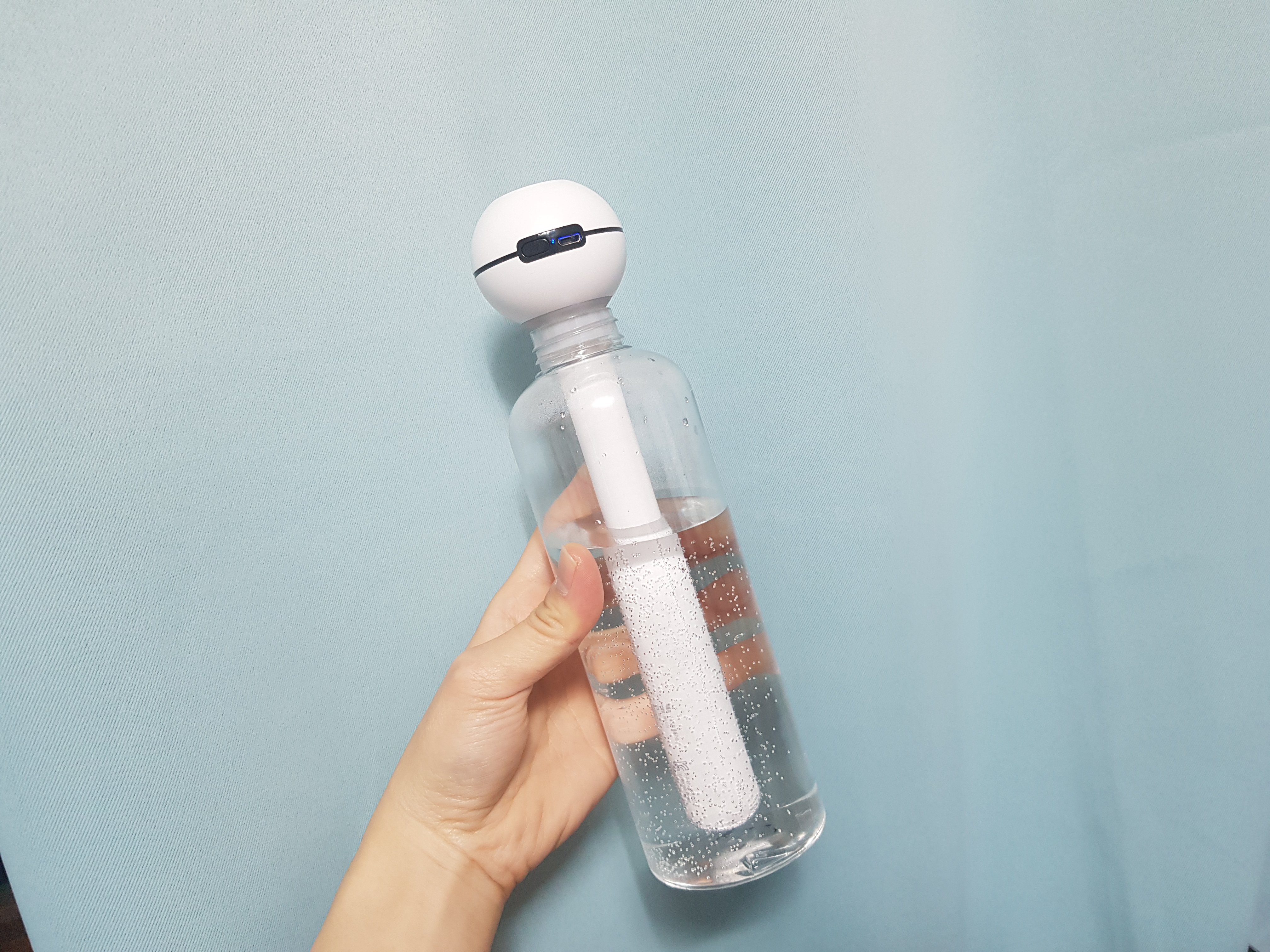 쨘! 구성품으로 500ml 플라스틱 병이 들어있지만 일반 생수병이나 컵이나 아무데나 꽂아놓기만 하면 됨.ㅋㅋ 손으로 잡으면 사이즈는 저정도. 앗참 ! 가습기는 생수말고 정수물 말고 수돗물로 사용하는거 잊지마시길! (세균번식 원이이 된다고 함) 필터는 한달~두달정도 지나면 교체해주면 됨.일단 2개는 기본으로 들어있으니 ㅋㅋㅋ3개월후면 겨울동안은 쓸듯.