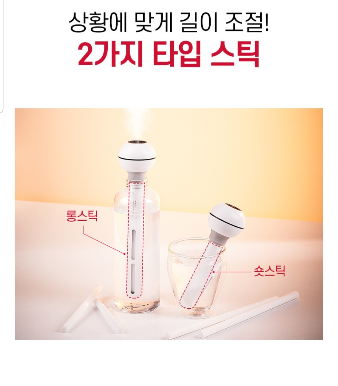 놀랐던건 저 쪼꼬미 본체?만 있으면 물병이건 세숫대야건 종이컵이건(아.종이컵은 가벼워서 안되겠다..ㅋㅋ) 물이 들어있는 모든곳에 꽂아 놓기만 하면 저렇게 가습이 되는 신박한 아이디어ㅋㅋㅋㅋ 참고로 스틱이 짧은거랑 긴거 두개 들어있어서 상황에 맞게 스틱끼워서 사용하면됨.