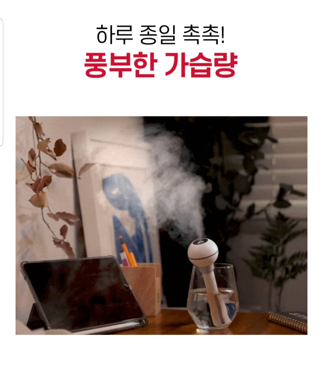 집에 가습기가 있긴 하지만 서브?로 하나만 더 있으면 좋을것 같아서 요리조리 검색해보다가 신박한 미니 가습기를 발견해서 구매해보았다.