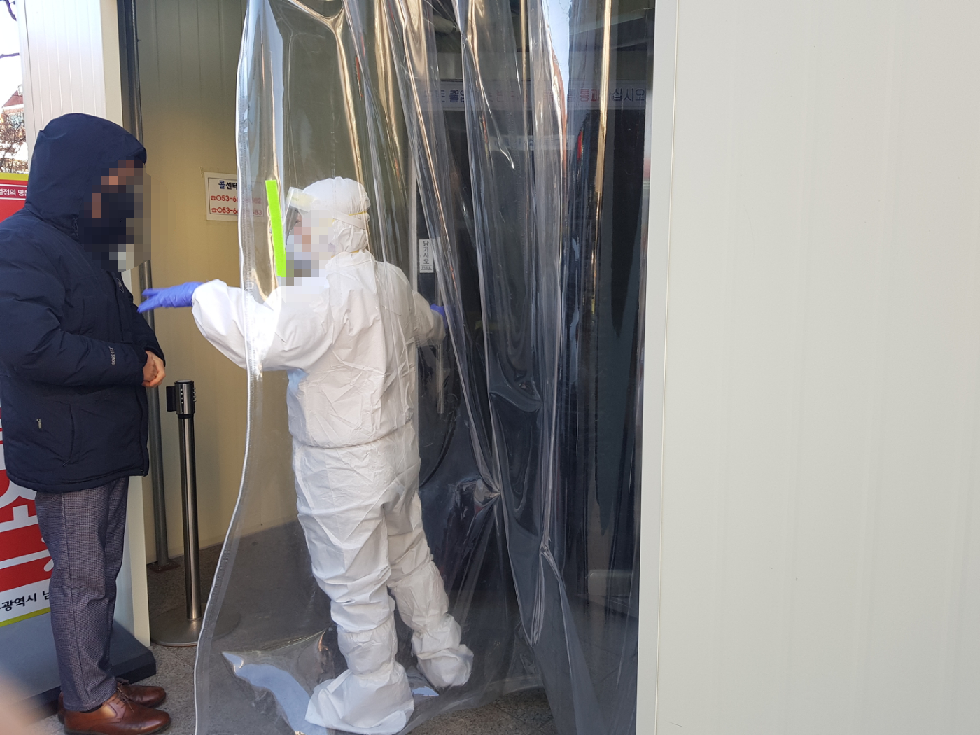 이렇게 대기를 하고 있으면 환자 확인후에 감염부스로 이동을 하게된다.