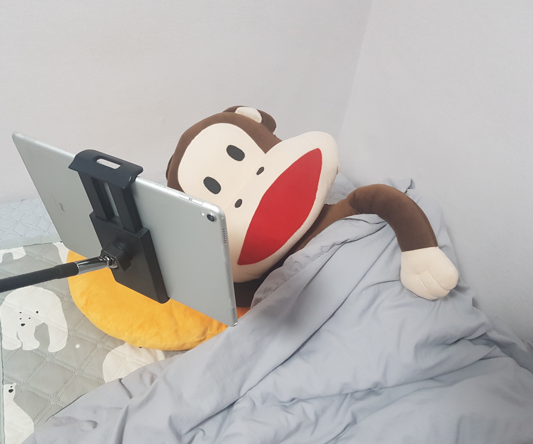 대신 출연한 내 대타 원숭이 ㅋㅋㅋㅋㅋ잠들기전 저자세 아침에 저자세로 늦게자고 늦게일어나게됨..ㅋㅋㅋ 진짜 세상편하다... 너무 누워있어서 허리아플정도로... 긴 시간을 버티게 해주고 있는 스탠드형 거치대.. 집에서 베이킹도 하는데 테이블 옆에 얘를 세워놓고 보면서 만들면 엄청 편할거 같아서 격리해제되면 바로 해봐야지...ㅋㅋㅋㅋ