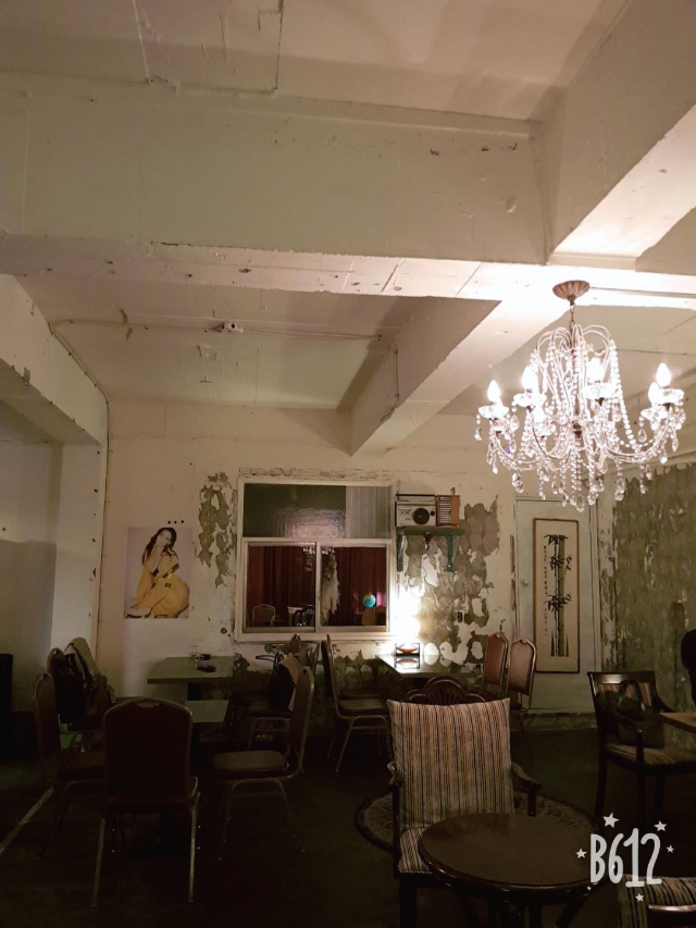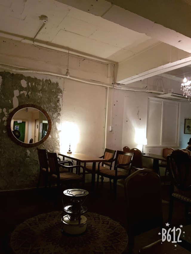 레트로 갬성 뿜뿜하는 무심한듯 인테리어 뜯다만 벽지나 뜯다만 빈병스티커 등 여기만의 독특하고 매력있는 갬성갬성 희안하게 샹들리에도 잘어울린다. 그리고 여기 셀카 막 찍어도 진짜 잘나온다.