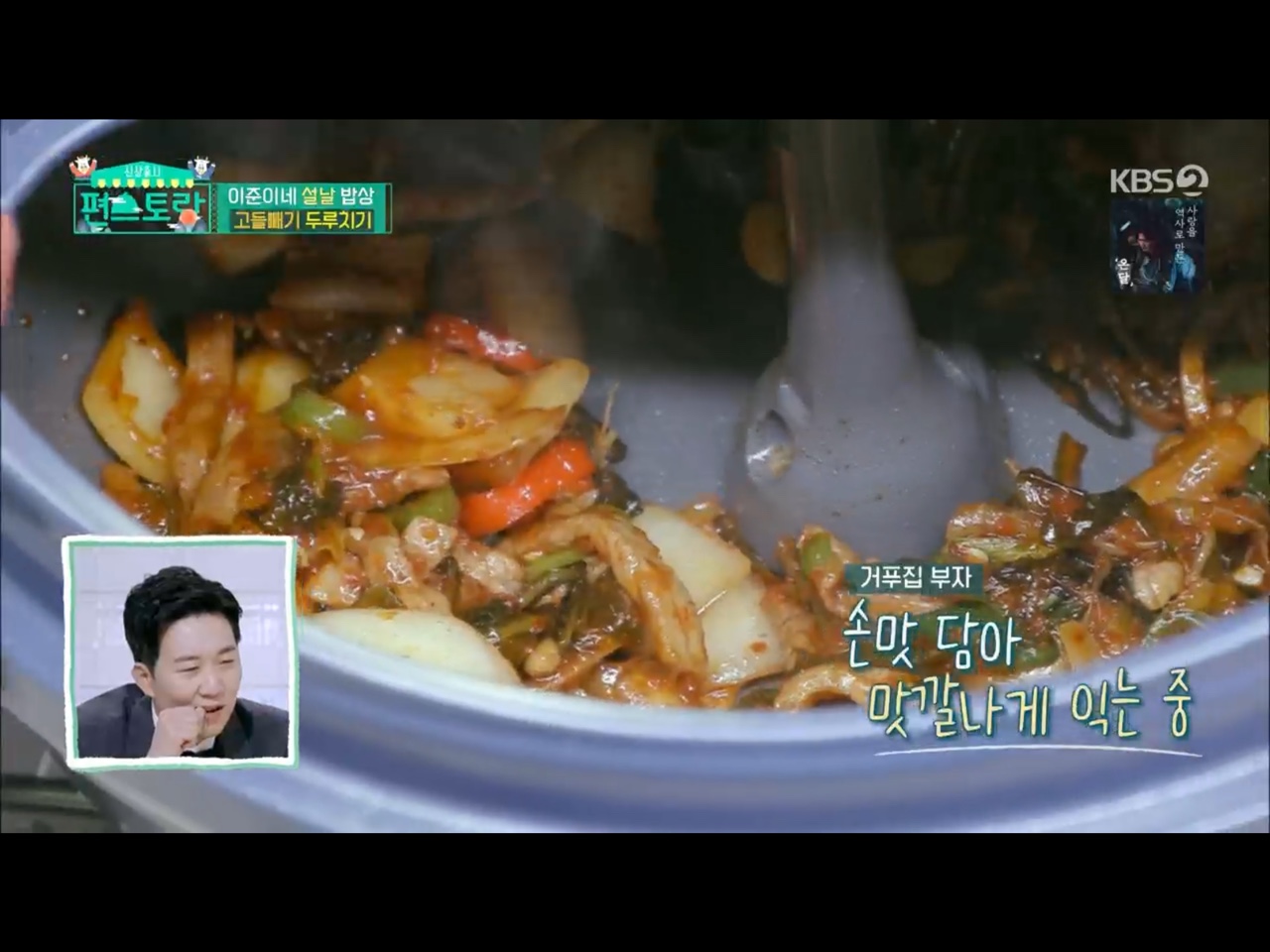 이걸 쓰고있는 시간에는 김재원이 이 메뉴로 우승을 한 상태 ㅋㅋ 고들빼기 두루치기를 만드는 과정에서 사용된 자동회전 냄비!! 신기하다..ㅋㅋ