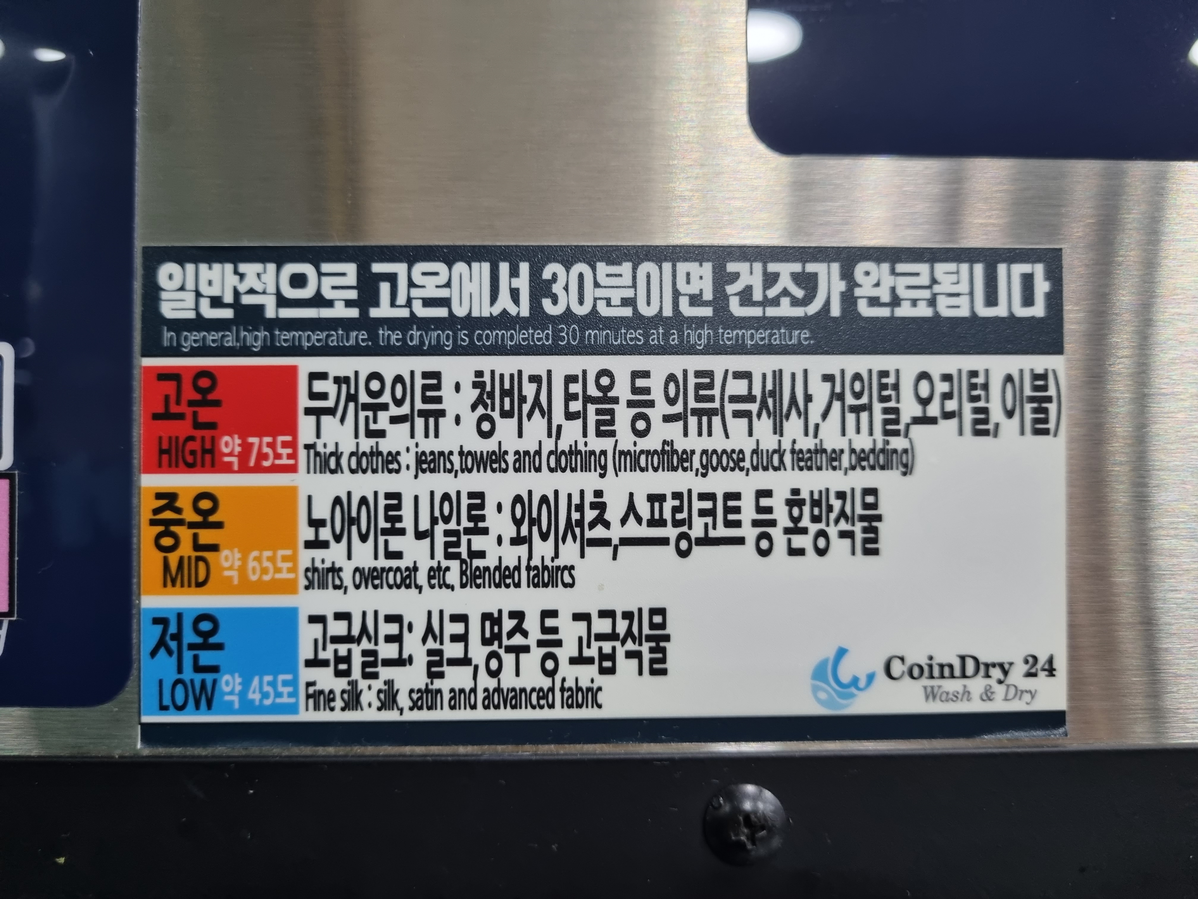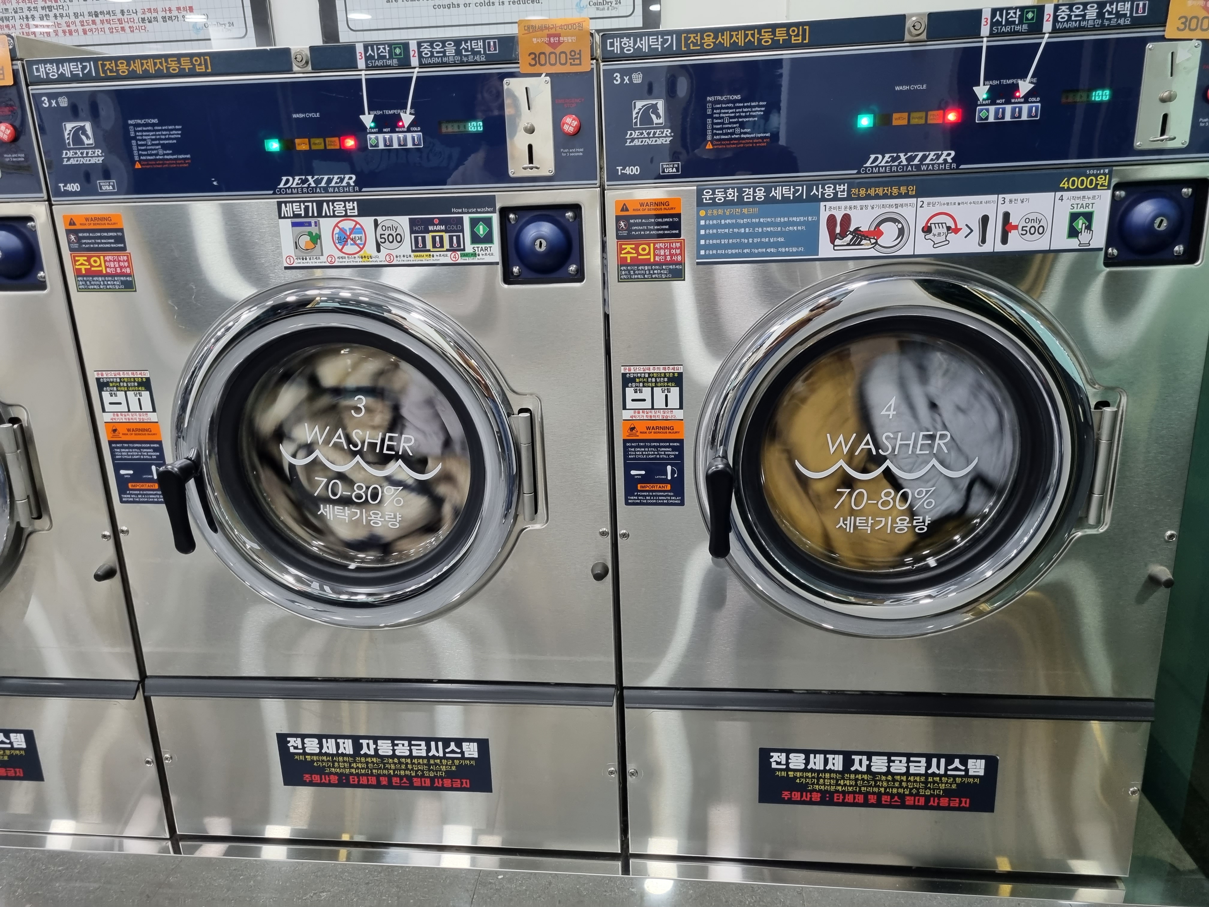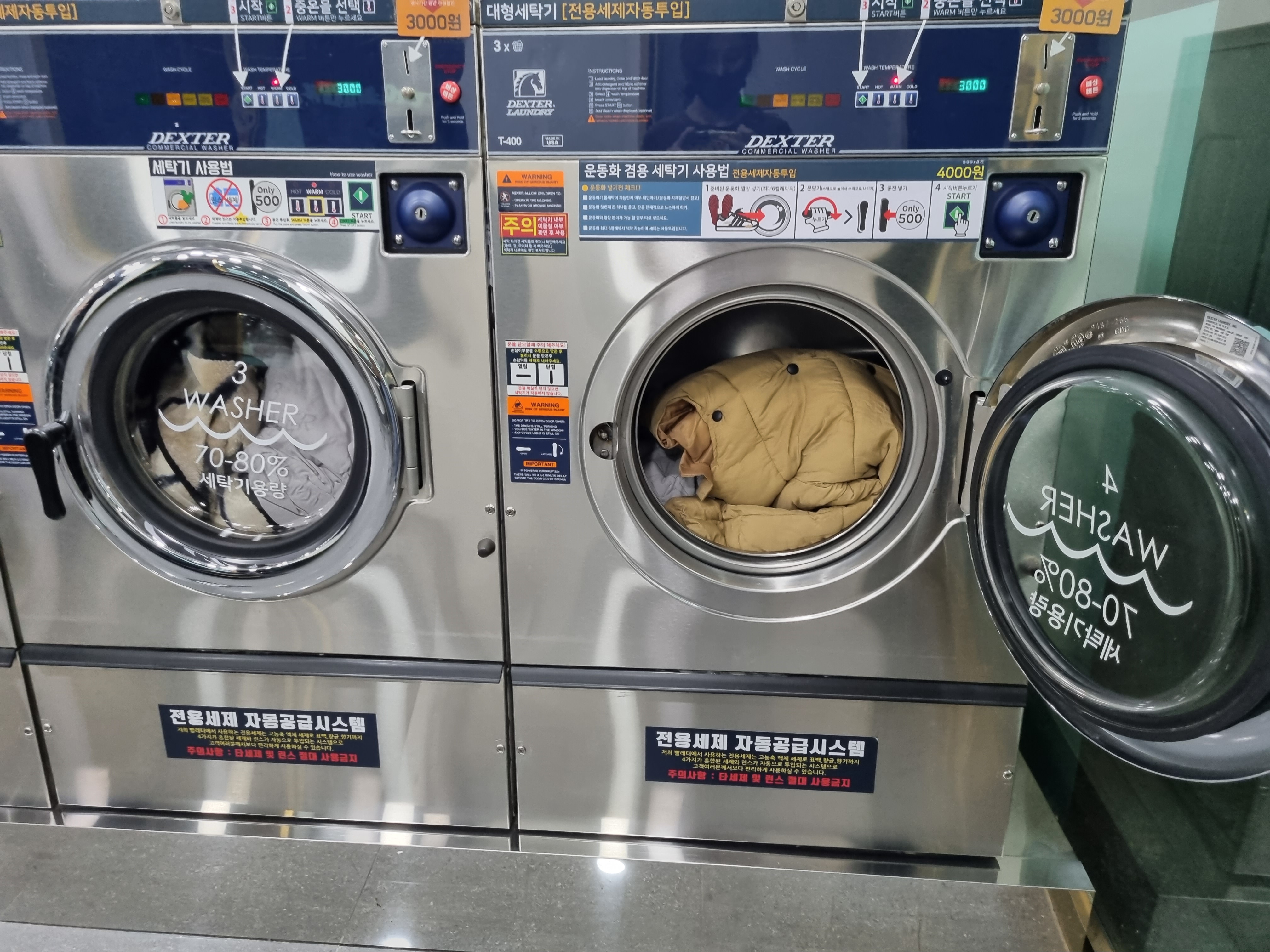 이때 마침 행사중이라서 4000원 굿굿. 이불가져오는김에 패딩들도 이날 가져가서 2대 돌릴예정. 사용방법은 그냥 동전넣고 순서에 따라 고온/중온/저온 중 중온을 선택후 시작버튼 누르고 기다리면됨... (보통 중온으로 하는게 무난무난) 한마디로 걍 써있는대로 하면 됩니다..하핫..ㅋㅋㅋㅋ 동전넣는곳 아래쪽에 친절하게 설명추가 되어있음.
