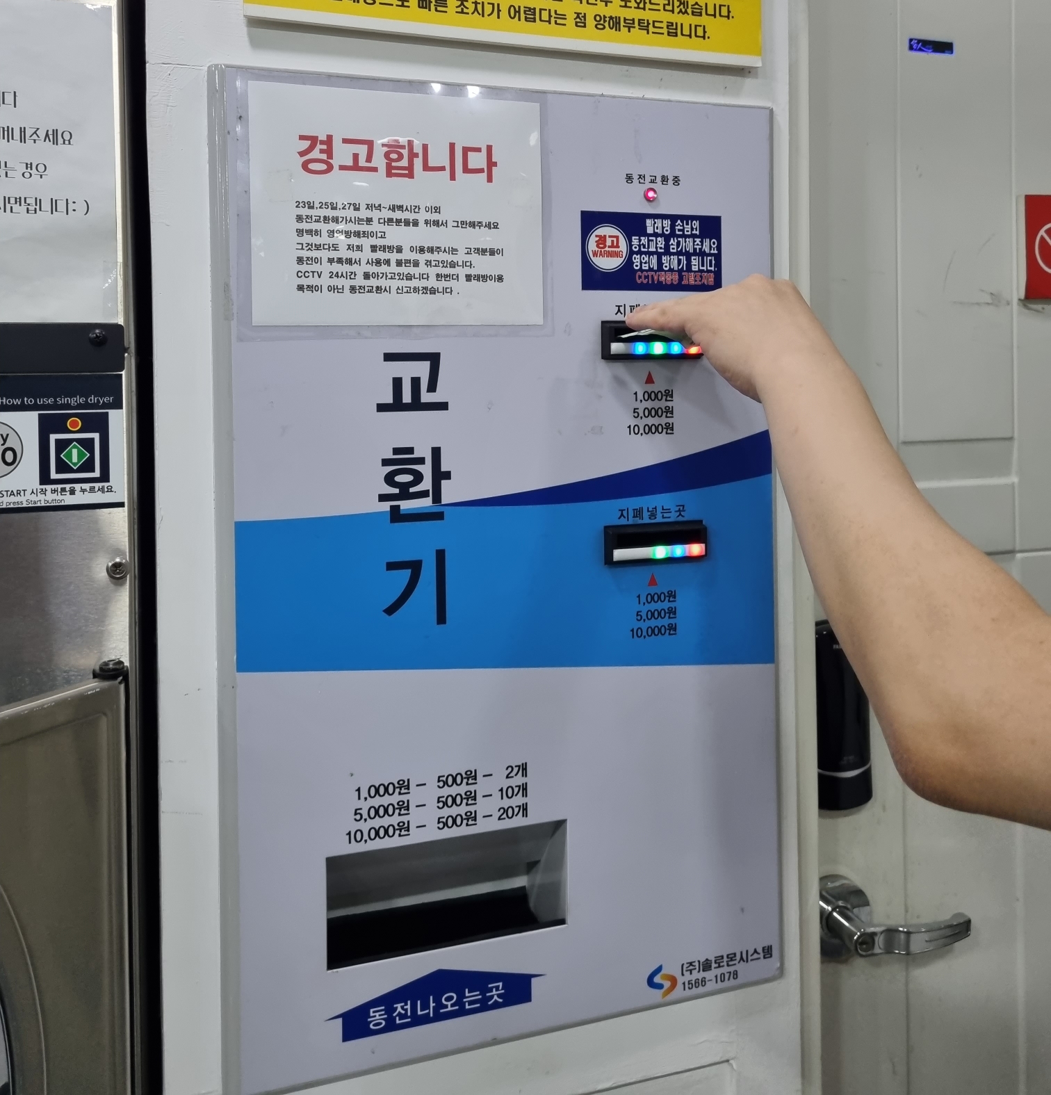500원만 사용 가능하기 때문에 지폐는 동전으로 바꿔주고