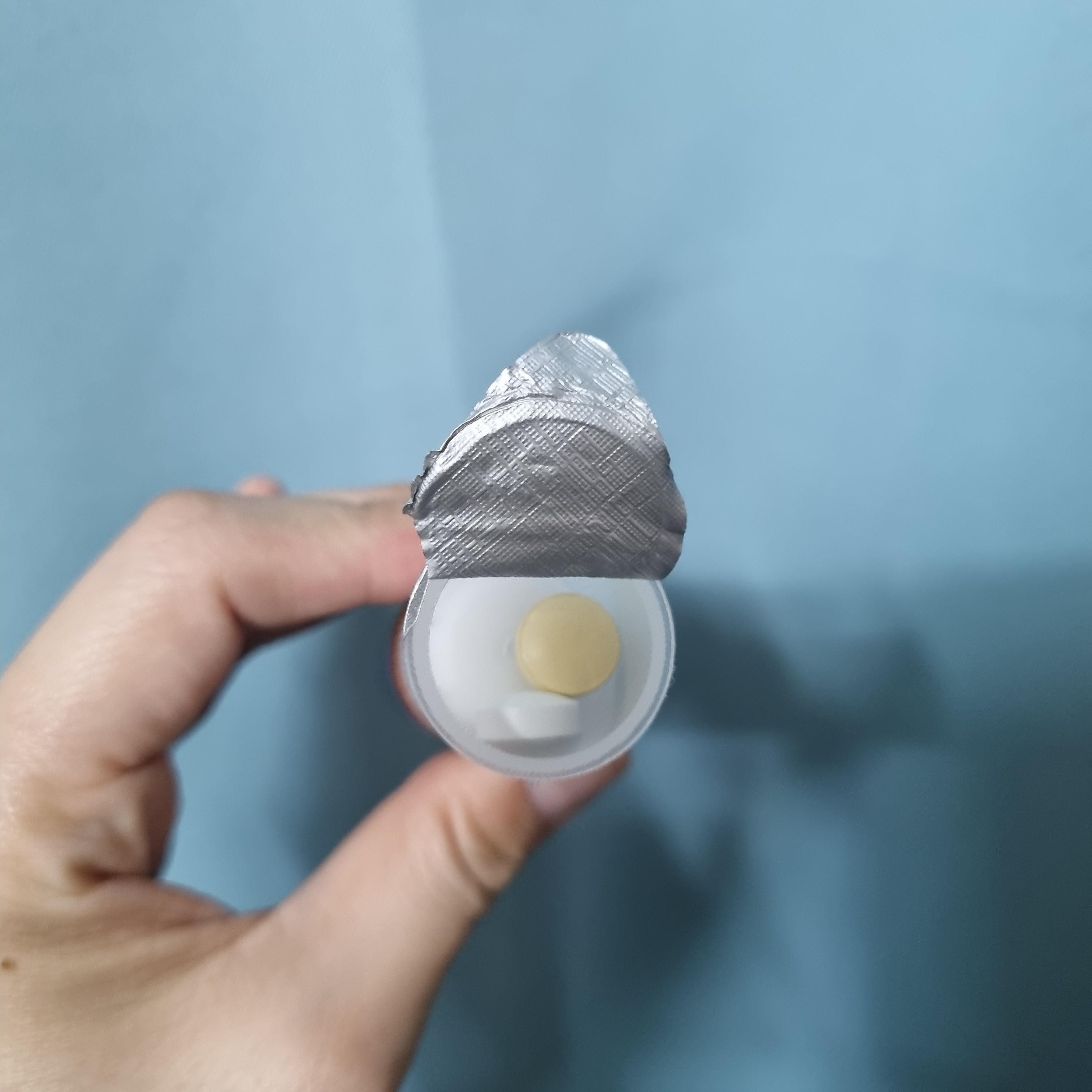 은박뚜껑을 따면 알약이 두개가 들어있는데
