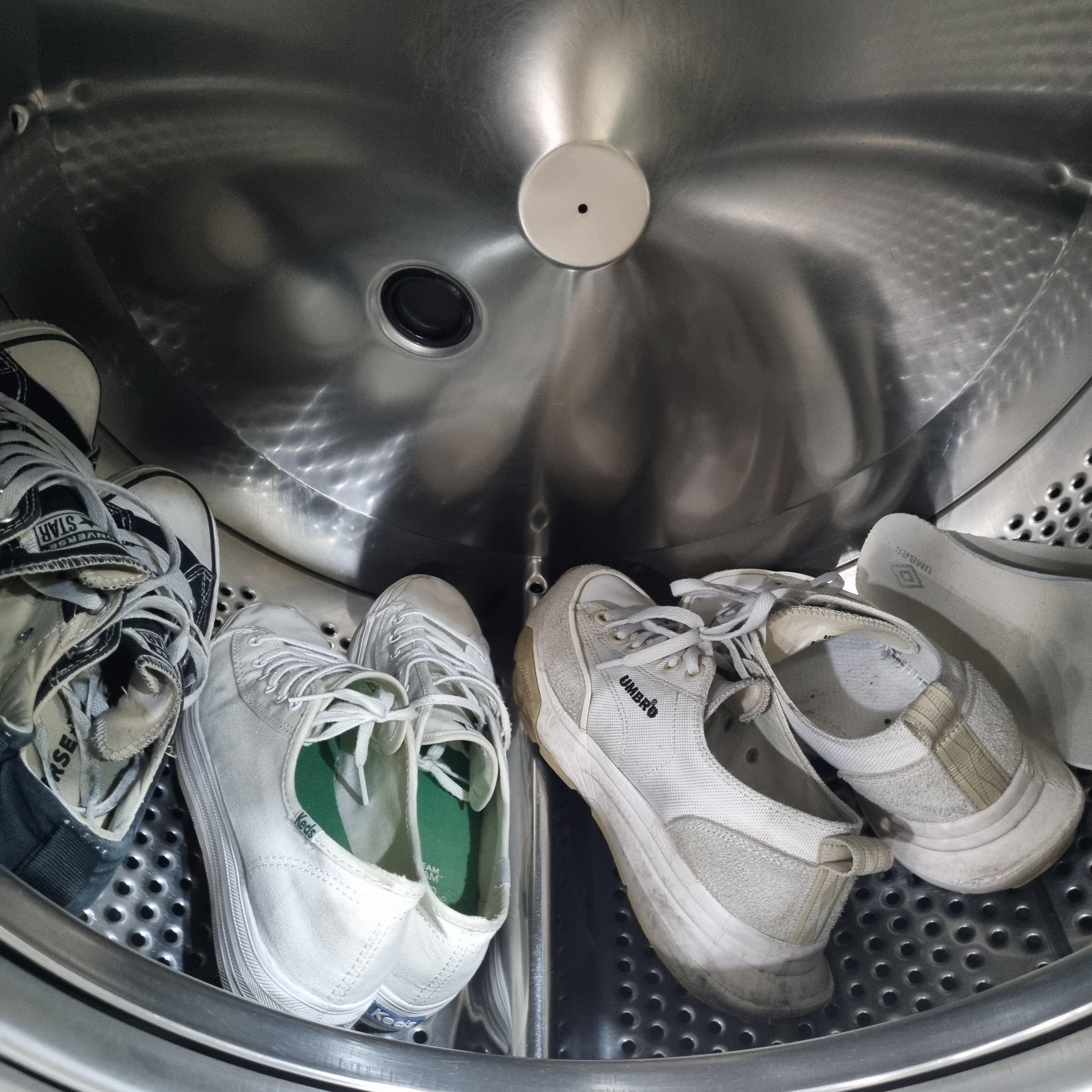 운동화 겸용 세탁기에 운동화를 넣어본다.