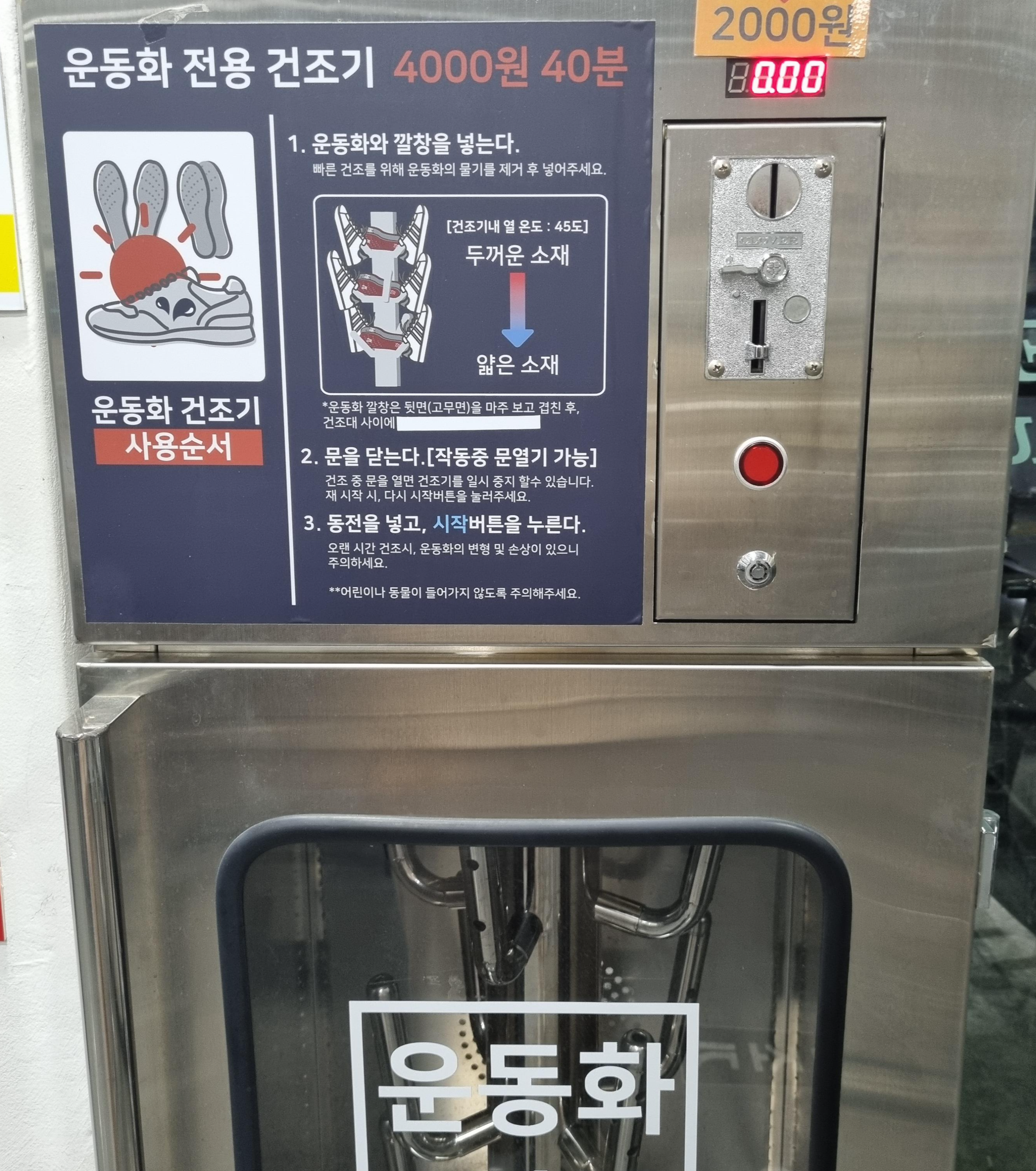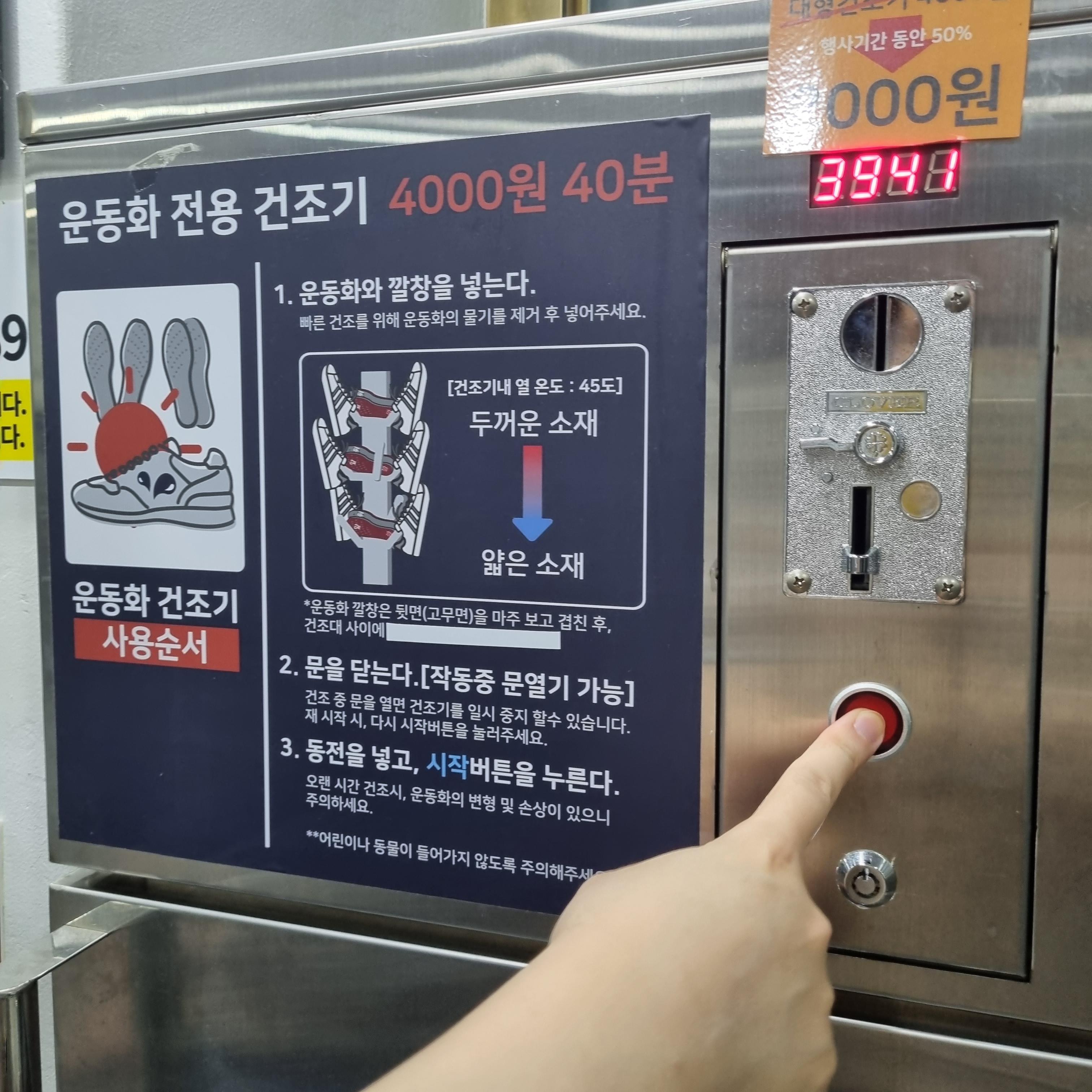 신발 넣는다 - 동전 넣는다 - 시작버튼 누른다 - 중온버튼만 누르면 알아서 작동함.