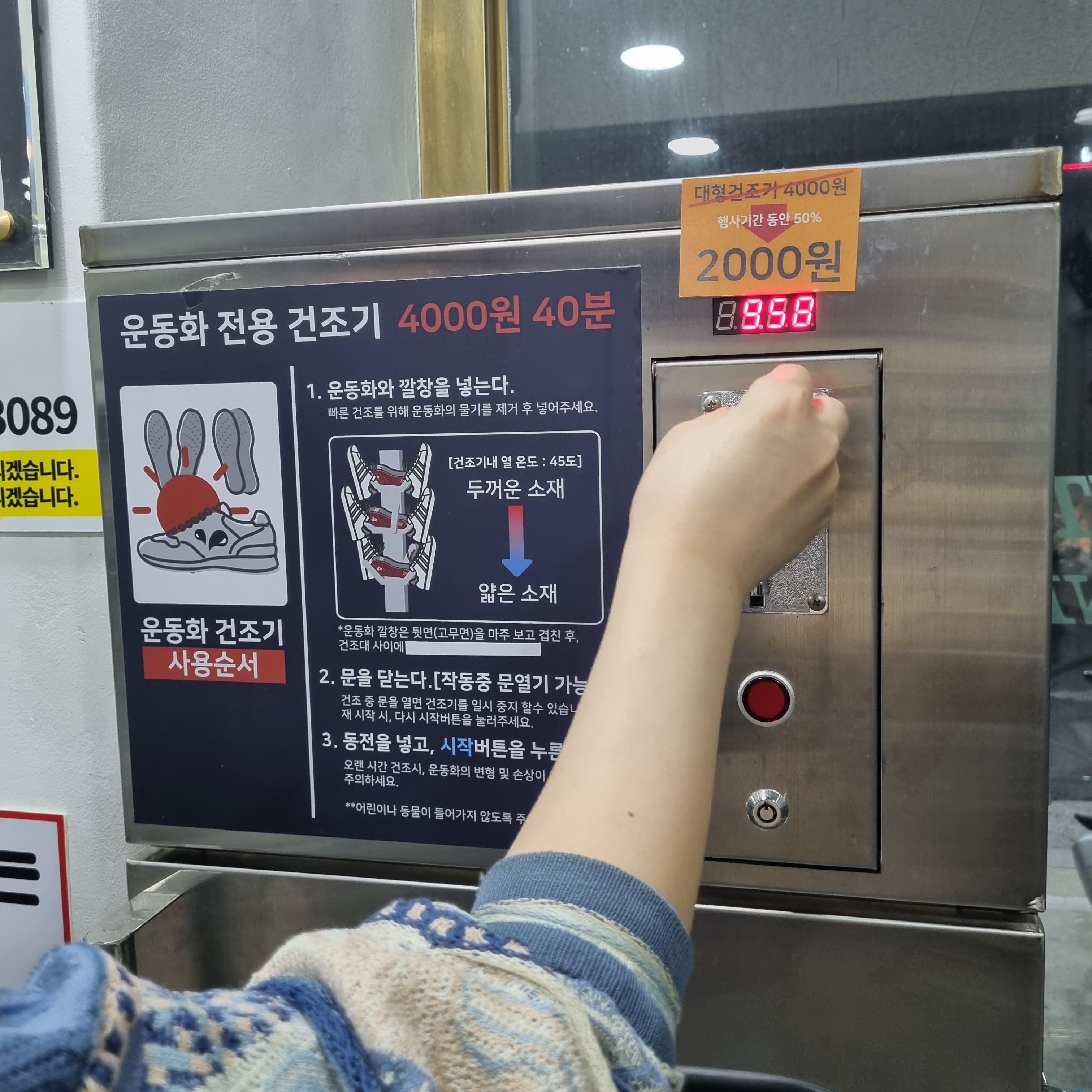 다음은 건조타임. 4천원인데 2천원으로 할인중. 총5천원에 운동화 3켤레 세탁 갠쟌네 갠쟌아