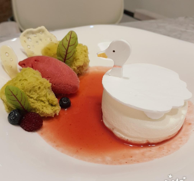 네번째 소개할 곳은 대봉동에 위치한 티라미스유.지금은 리뉴얼준비 중이라 2월에 다시 오픈 하신다고 나와있는데.이렇게 예술작품같은 디저트는 처음이라 훼손하기 아까워서 눈으로 한참 스캔했었다고 한다..눈과 입 모두 기분전환 제대로 되는 디저트였다. 저 작품은 수성못 크렘당쥬였고 머랭오리 아래 무스타입 크림치즈케이크가 있었던 기억이 나고 라즈베리 소스?로 붉은색을 표현 했다고 하셨던거 같은데 설명도 굉장히 쉽게 잘해주셨고 나갈때 티라미수를 사서 나왔다고한다.