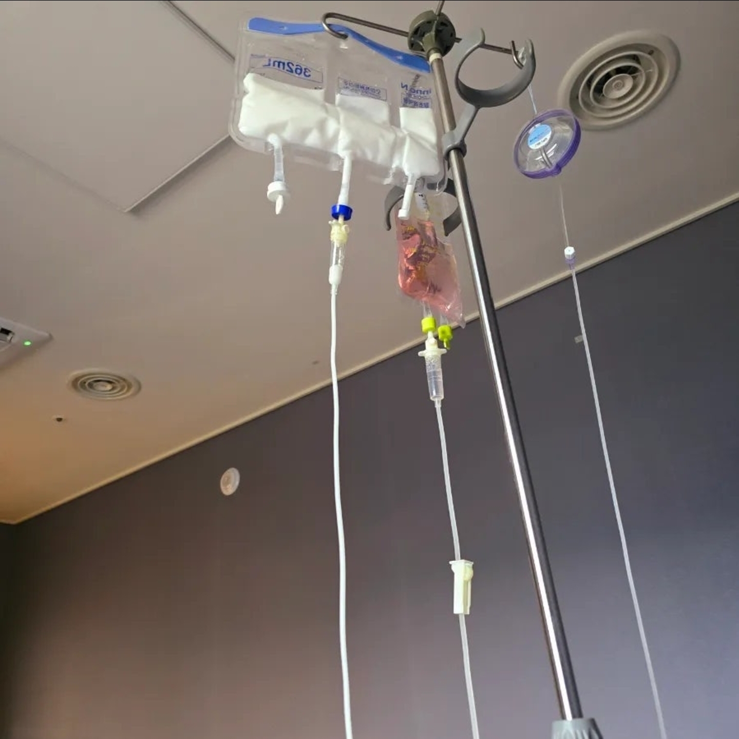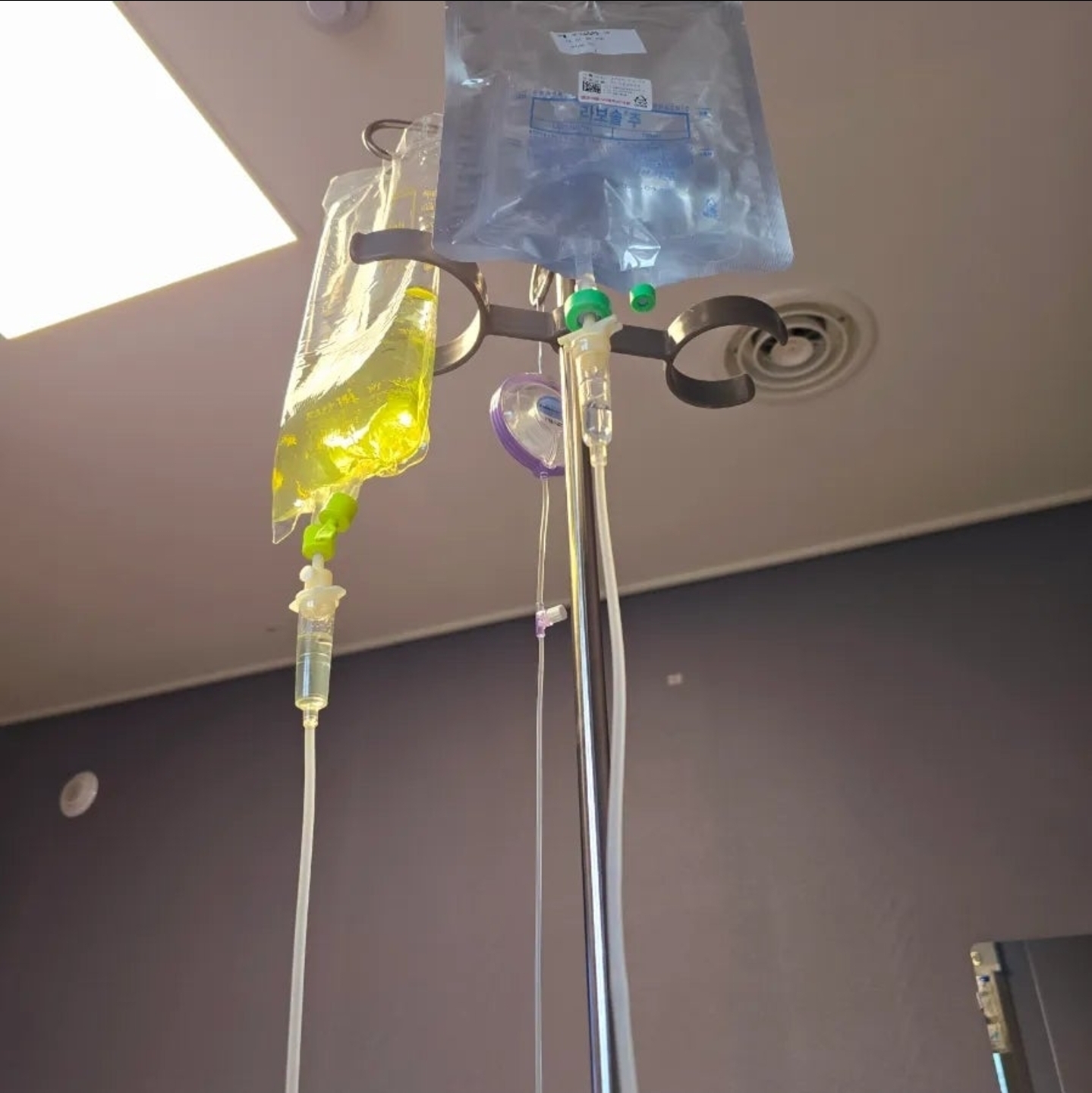 양갈래 머리로 수술복 갈아입고 링거 맞고