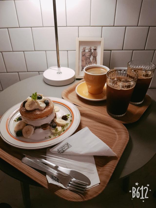 커피도 팬케이크도 디저트도 괜찮았던 숨어있는 아파트먼트.주차장없는점.단점.느낌있는 분위기.음악소리 큰건 내기분에따라 장점.