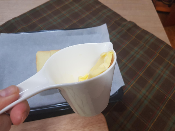 버터를 40g 계랑하여 전자렌지 용기에 담고 (버터는 더 적게 넣어도 된다. 나는 많이 넣었음)