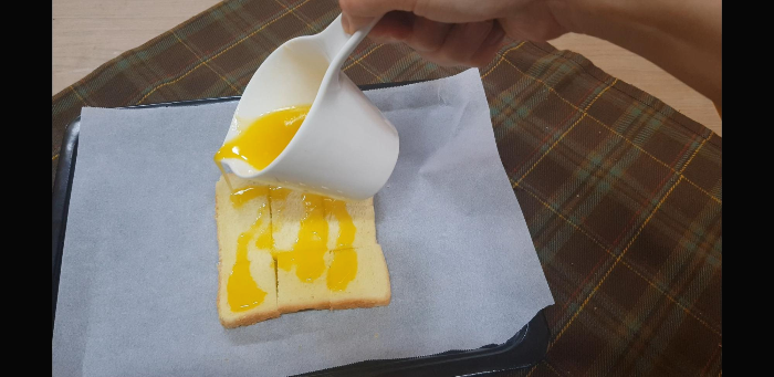 저어준다. 가장먼저 설탕시럽을 만들어 놓고 녹는동안 식빵손질을 한다. 나는 백설탕이 없어서 황설탕을 사용했고 백설탕이나 황설탕이나 상관없음.
