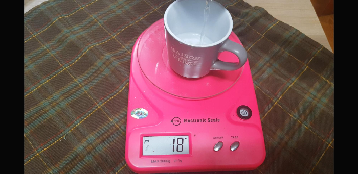카페에서 근무하면서 허니브레를 많이 판매 해본 경험으로 내린 결과는 허니브레드에 허니보다는 설탕 시럽이 훨씬 맛있다는것.꿀을넣고 아무리 해봐도 설탕시럽 못따라온다는 혼자만의? 결론을 내렸다.(참고로 매장에서 알바생들이랑 맛있게 만들어 본다고 꿀을 듬뿍 넣어서 해봣는데 실제적으로 느껴지는 맛은 설탕이 훨씬 나았다는 경험바탕)그래서 설탕시럽을 만들기위해 온수20g을 계량한다.