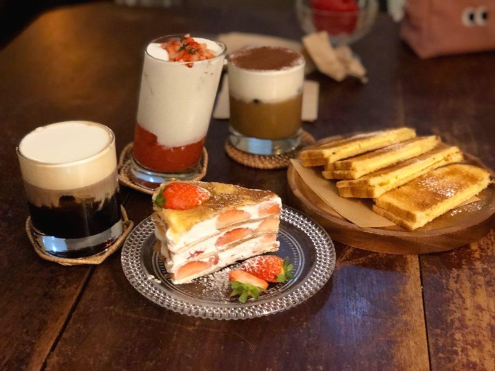 다섯번째 카페는 오픈한지는 꽤 되었음에도 불구하고 꾸준히 사랑받고있는 호롱커피.갬성돋는 공간에서 시그니처 아몬드 커피와 시선강탈 크레이프케이크.그리고 호롱커피만의 카야토스트는 필수. 왠만한 카야 토스트보다 바삭한 식감이 좋았다.(나 카야토스트 쫌 먹으러 다녀본 사람임ㅋ)