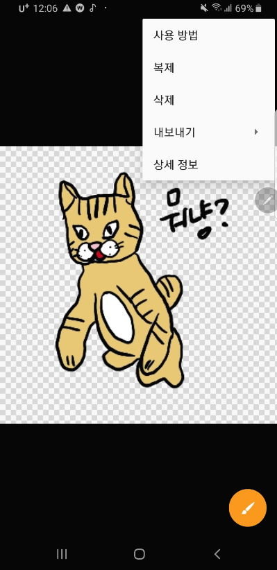 내보내기에서 반드시 png파일로 저장하도록 한다.요새는 앱들이 잘나와서 더 좋은 앱도 많을듯...갤럭시 노트로 이모티콘 만들어보기 끄읕.