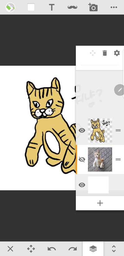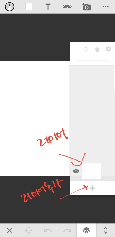 첫화면은 이런모습 여기서 제일 하단에 종이겹친 버튼이 레이어다. 처음엔 기본레이어 한장만 깔려있고 안전하게 플러스를 눌러서 한장더 추가한다.그냥 막막하고 뭘그릴지 모를때는 대충 따라그리고 싶은 간단한 그림을 불러온다. (레이어의장점)