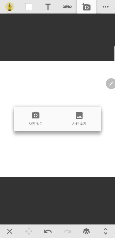 앱을 누르면 첫화면 아래쪽에 세가지 버튼이 나오는데 (딱봐도) 붓은 그리기 사진은 이미지 불러오기 카메라는 사진바로찍기 되겠다.여기서 붓모양 터치