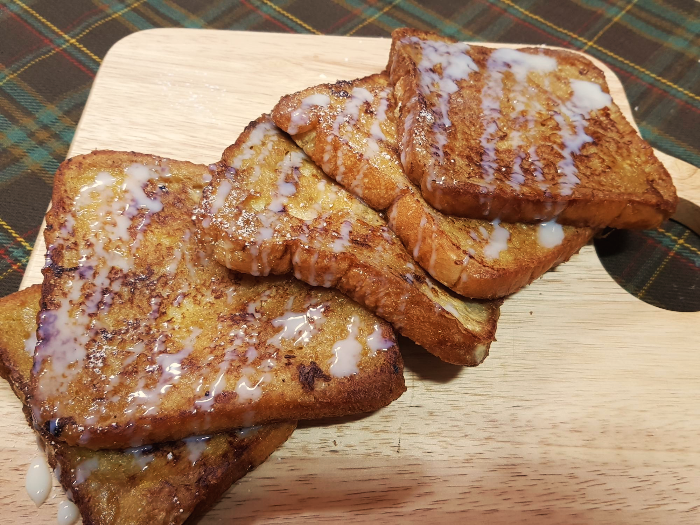 플레이팅 할만한 재료가 딱히 없어서 위에 연유를 드리즐해 보았다.(슈가파우더는 티가안나서)일단 기본 토스트나 프렌치 토스트에도 연유는 찰떡이니 잘어울릴걸 예상하며 한입먹어본 결과.맛은 촉촉하고 폭신한데 은은하게 커피맛이 나는것이 모카빵?모카번 같은 그런맛이나서 의외로 괜찮았다.그냥 먹는것도 맛있지만 약간의 연유를 뿌려서 먹으니 훨씬 맛있는걸? 이러면 연유라떼를 먹는건가?ㅋㅋ집에서 가끔 계란을 풀어서 토스트를 자주 해먹는데 확실히 우유가 들어가다보니 훨씬 많은 양의 식빵을 구울수가 있다. 평소에 계란만 풀어서 구워먹을때는 계란하나당 식빵2장정도면 끝이었는데 우유가 들어가다보니 생각보다 많은 양의 토스트가 나왔음..혼자서 먹을때는 반 정도만 계량해서 만들면 적당할것 같다. 커피한잔과 함께 즐기려고 하였으나 이미 커피에 빠진 토스트라 커피는 생략했다고 한다. 간단한과정에 과도한 혼잣말의 오늘의 대충디저트 끝.