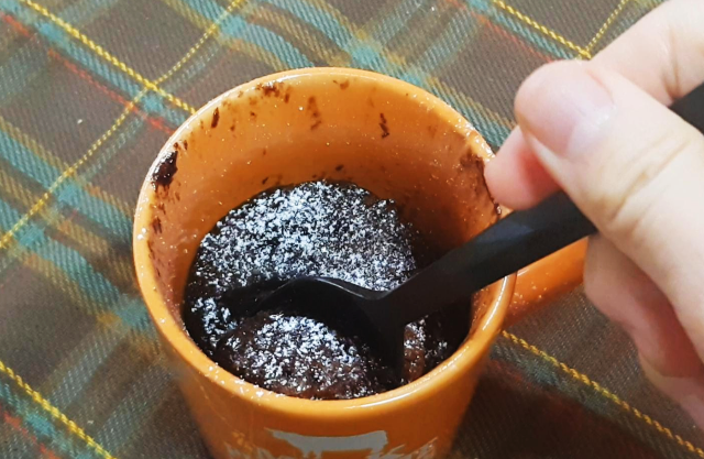 윗부분은 좀 더 익어서 푸딩 같아도 아랫부분은 괜찮은데? 30초 돌리면 괜찮을듯! 5분도 안걸리는 과정 치고는 괜찮은데? 양을 두배로 늘려서 2인이서 함께 먹어도 좋을듯. 초간단 최소재료와 설겆이 퐁당쇼콜라 끄읕.