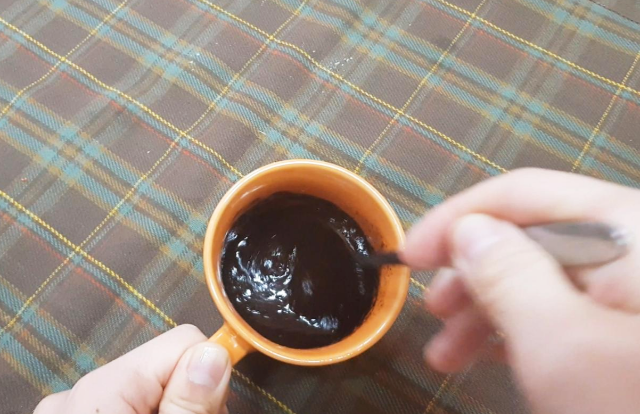 합체한 베이스를 스푼으로 마구마구 골고루 노란색이 안보이게 쓰까 줍니다. 그다음 전자렌지로 이송하는데 여기서 핵 중요한점은 30초만 돌려줘야 한다는것. 왜냐...?