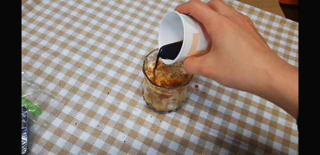 녹인 카누를 그 위로 부어준다. 달고나흑당라떼 완성. 옴뇸뇸 맛이가 좋구나!!! 가스렌지에 시도하는것 보다는 더 쉬운것같다. 자주 해봐야징.ㅋㅋ