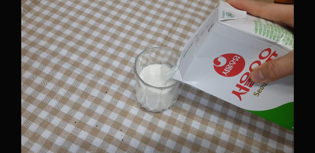 우유를 컵에다 부어준다. 참고로 난 얼음없는 있는 그대로의 맛을 좋아하므로..ㅋㅋ얼음따윈 필요없...참고로 얼음을넣어야 달고나가 오래살아있음.얼음넣으시길