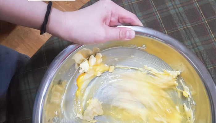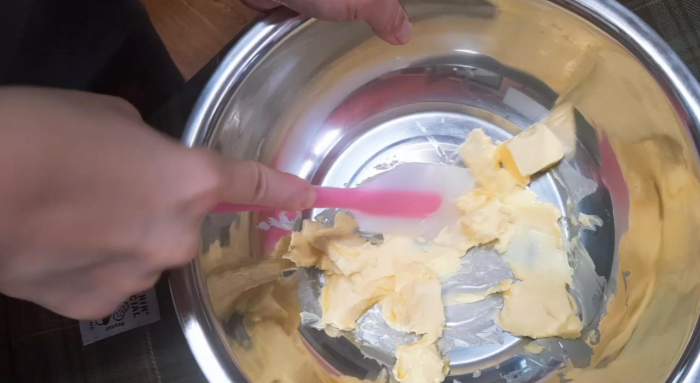미리꺼내놓았던 버터를 깔끄미 주걱으로 마구마구 으깨서 풀어준다. 싫어하는 사람 떠올리며ㅋㅋ이때 버터를 꺼내서 바로하게되면 알통생성가능... 힘들어진다..ㅋ미리준비가 생활근육을 방지한다. 아시겠어요.?