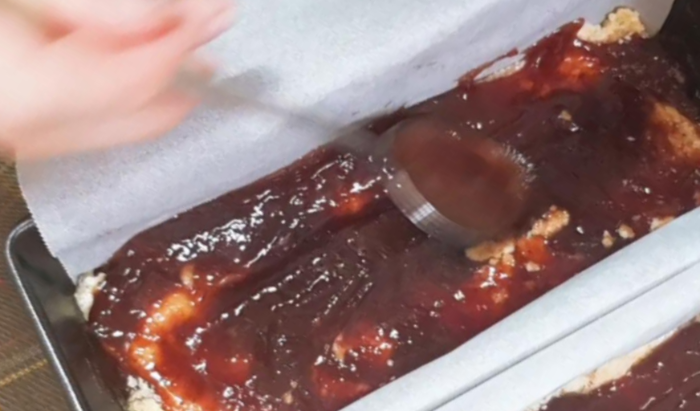 그다음 집에서 찬밥신세에 처한 잼을바르는데 (사진무엇..?태양초 고추장 아입미다..) 나는 딸기잼으로 하였으나 애플잼 블루베리잼 모두 가능하다.나는 하다보니 투머치하게 올려버림.. 엄청달거같음..ㅋㅋ윗면에 소보로가 올라가니까 적당히 바르는걸 추천한다.