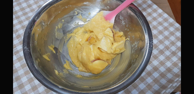 미니 파운드 케익팬 기준이라 사과를 슬라이스하고 거기서 또 반을 슬라이스 해줬음.
