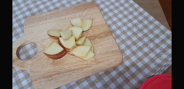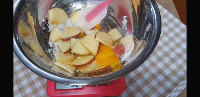우선 사과를 베이킹소다를 이용해 깨끗하고 반질반질하게 씻어준다. 참고로 나는 미니파운드팬을 이용할거라 사과의 반만 사용할것임.미니파운드팬(6조각 정도 나옴) 기준 사과 150g정도 넉넉하게 넣어주겠음.